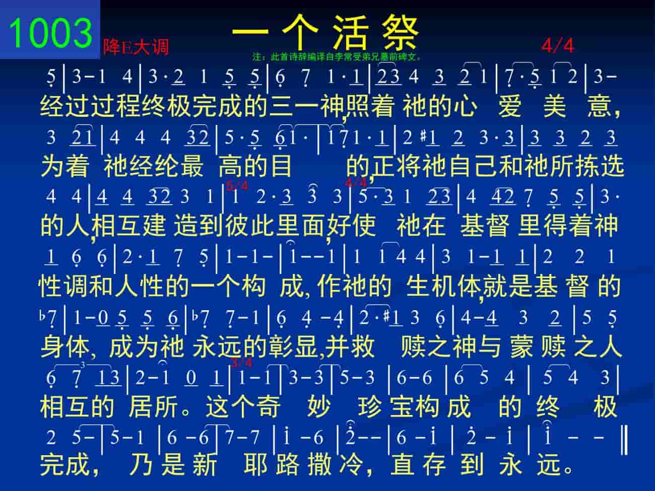 经过过程终极完成的三一神,照着祂的心爱美意,为着祂经纶最高的目的,正将祂自己和祂所拣选的人,相互建造到彼此里面,好使祂在基督里得着神性调和人性的一个构成,作祂的生机体,就是基督的身体,成为祂永远的彰显,并救赎之神与蒙救赎之人相互的居所。这个奇妙珍宝构成的终极完成,乃是新耶路撒冷,直存到永远。