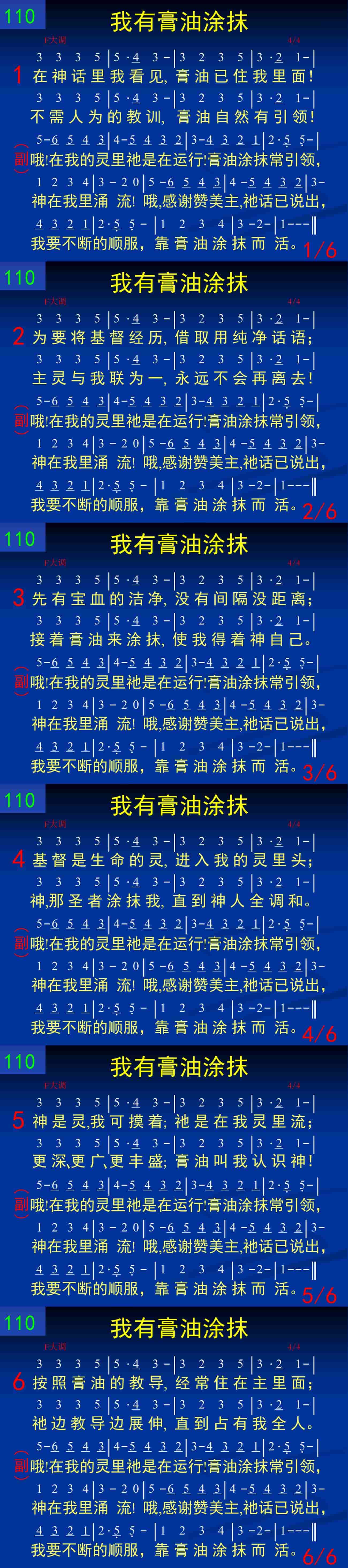 哦!在我的灵里祂是在运行!膏油涂抹常引领,神在我里涌流!哦,感谢赞美主,祂话已说出,我要不断的顺服,靠膏油涂抹而活。