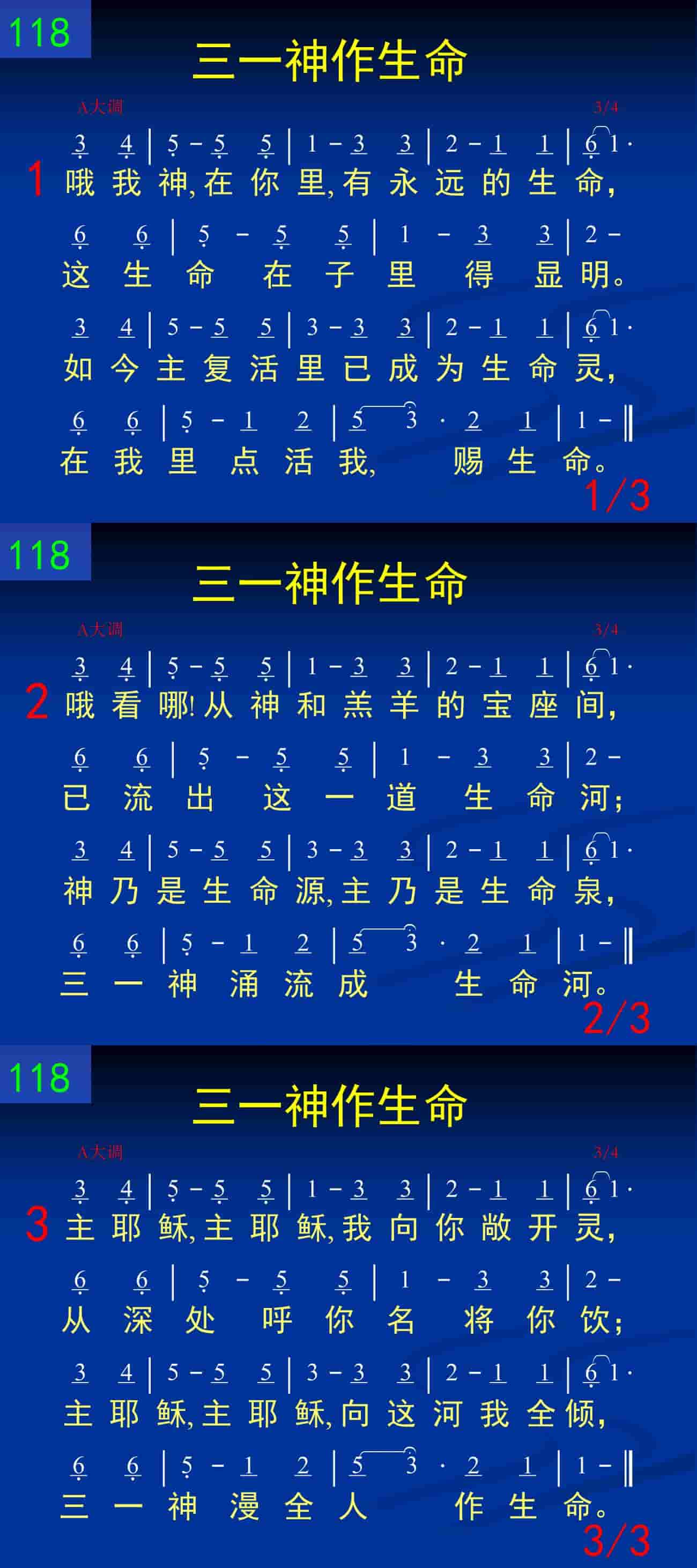 哦看哪!从神和羔羊的宝座间,已流出这一道生命河;神乃是生命源,主乃是生命泉,三一神涌流成生命河。