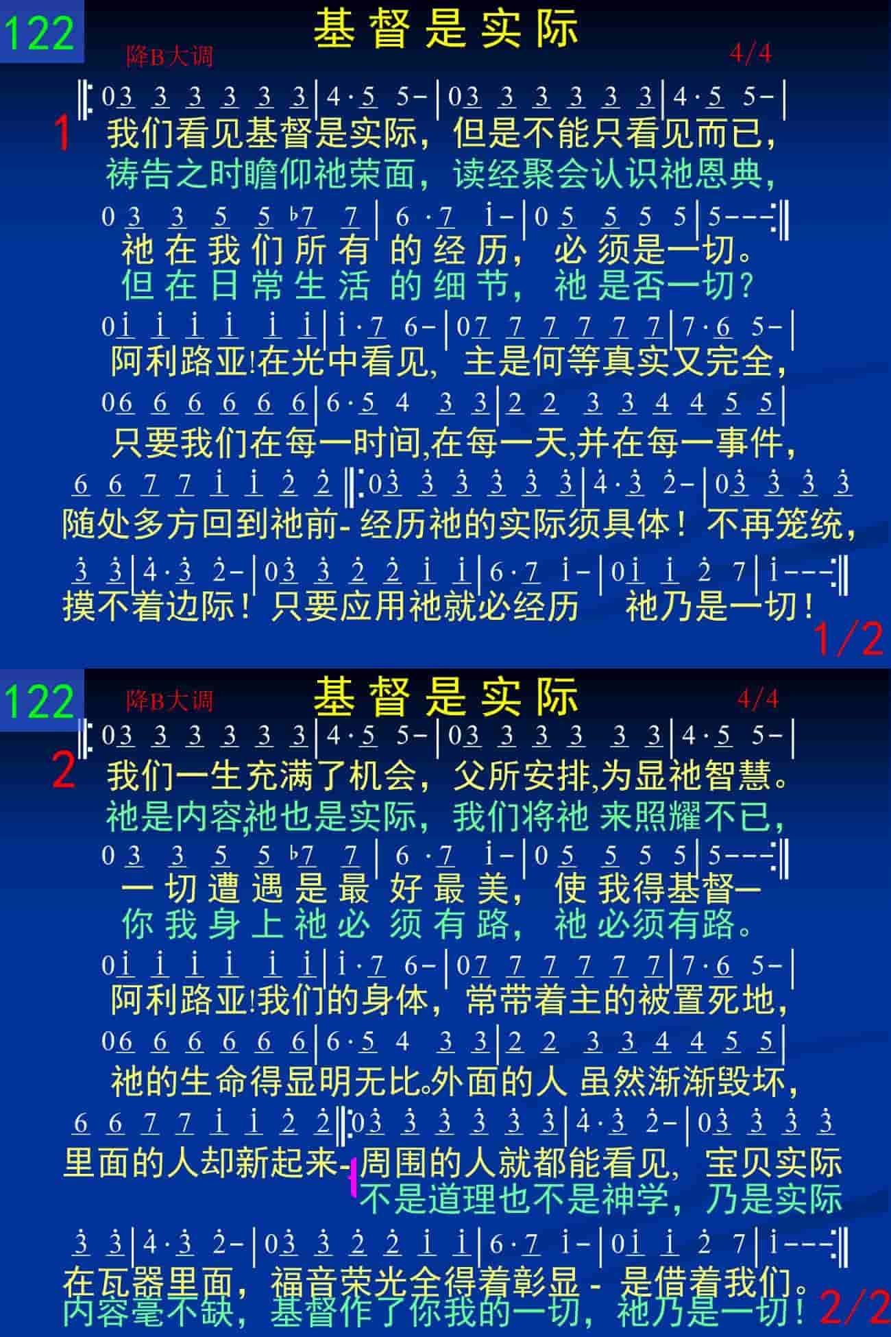 我们一生充满了机会,父所安排,为显祂智慧。一切遭遇是最好最美,使我得基督——祂是内容,祂也是实际,我们将祂来照耀不已,你我身上祂必须有路,祂必须有路。阿利路亚!我们的身体,常带着主的被置死地,祂的生命得显明无比。外面的人虽然渐渐毁坏,里面的人却新起来——周围的人就都能看见,宝贝实际在瓦器里面,福音荣光全得着彰显——是借着我们。不是道理也不是神学,乃是实际内容毫不缺,基督作了我的一切,祂乃是一切!