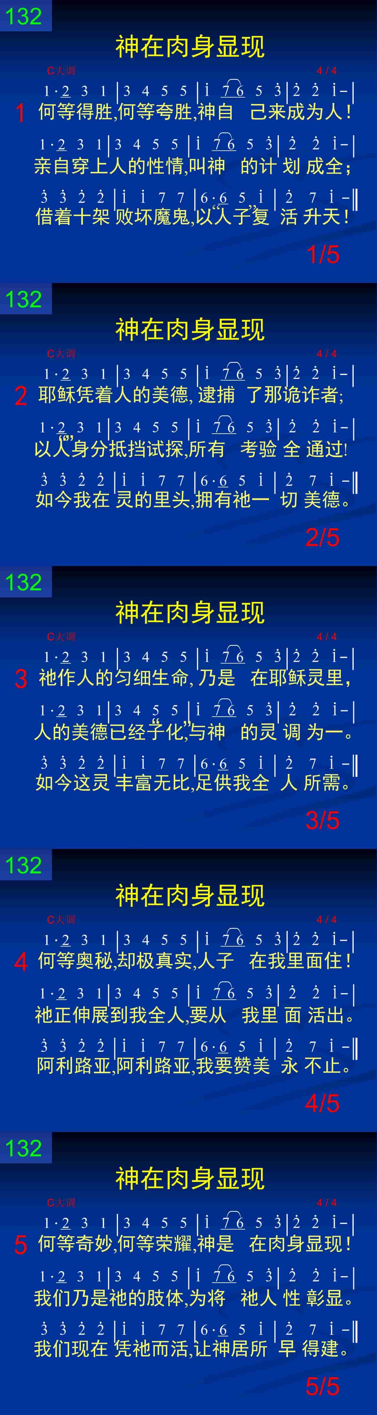 何等奇妙,何等荣耀,神是在肉身显现!我们乃是祂的肢体,为将祂人性彰显。我们现在凭祂而活,让神居所早得建。