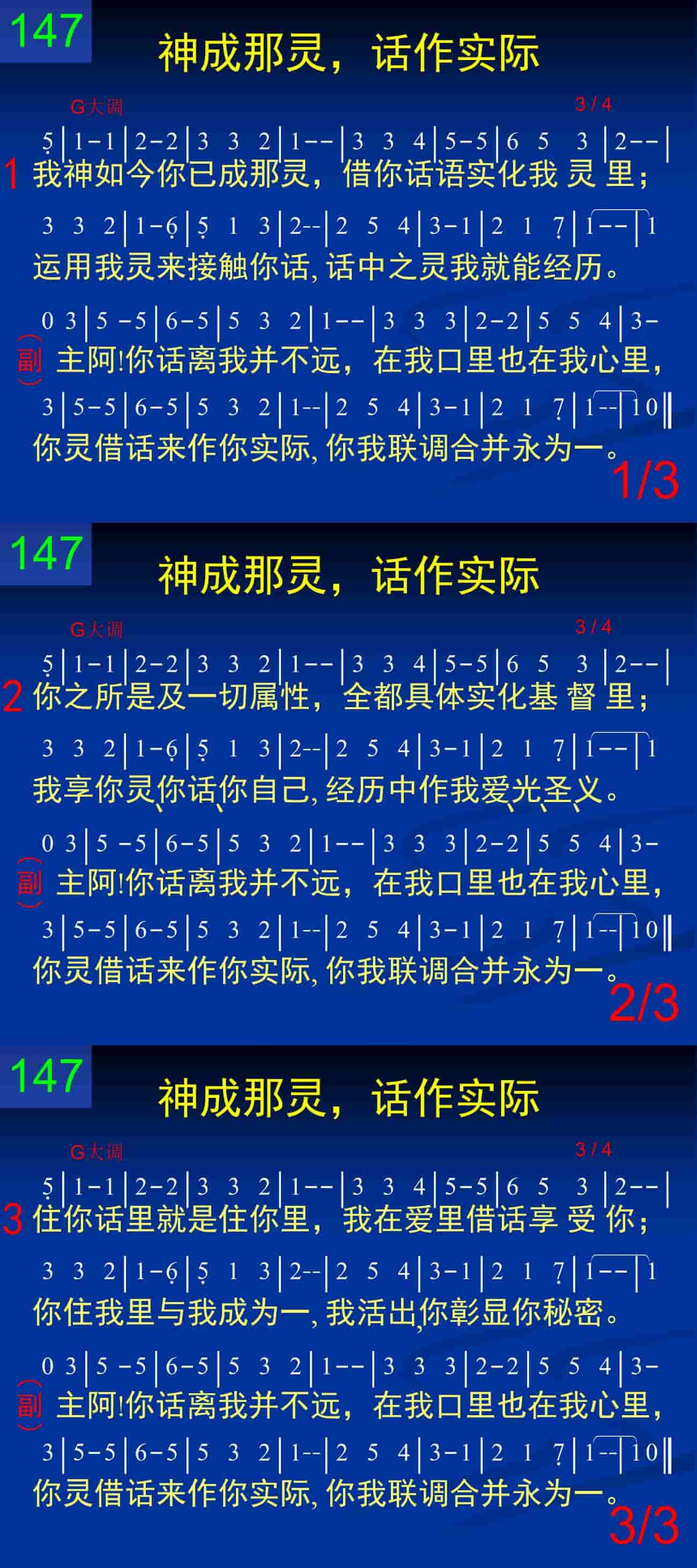 主啊!你话离我并不远,在我口里也在我心里,你灵借话来作你实际,你我联调合并永为一。