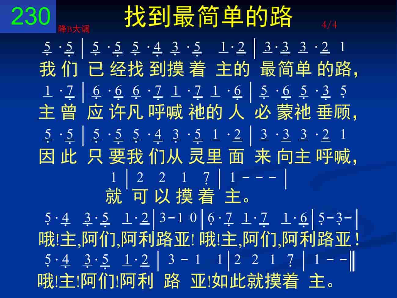 我们已经找到摸着主的最简单的路,主曾应许凡呼喊祂的人必蒙祂垂顾,因此只要我们从灵里面来向主呼喊,就可以摸着主。哦!主,阿们,阿利路亚!哦!主,阿们,阿利路亚!哦!主,阿们,阿利路亚!如此就摸着主。