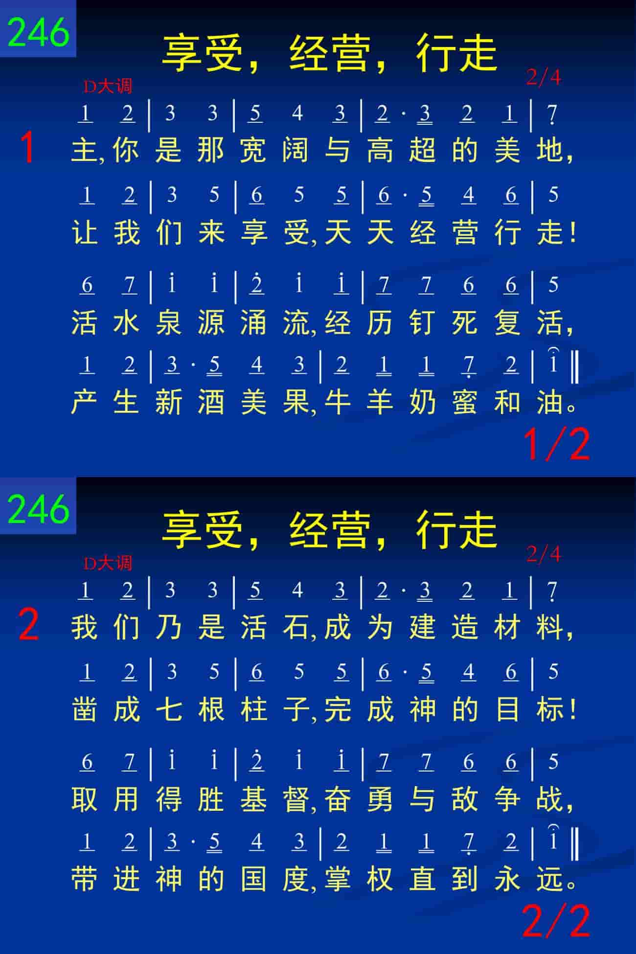 主,你是那宽阔与高超的美地,让我们来享受,天天经营行走!活水泉源涌流,经历钉死复活,产生新酒美果,牛羊奶蜜和油。