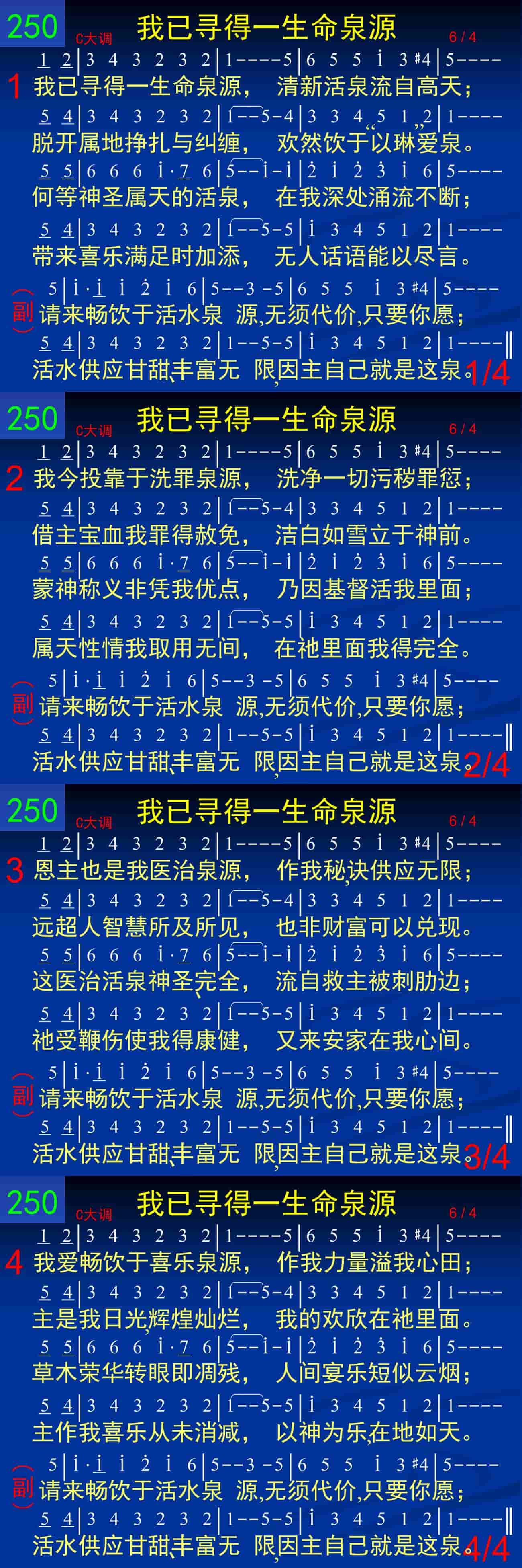 我已寻得一生命泉源,清新活泉流自高天;脱开属地挣扎与纠缠,欢然饮于“以琳”爱泉。何等神圣属天的活泉,在我深处涌流不断;带来喜乐满足时加添,无人话语能以尽言。