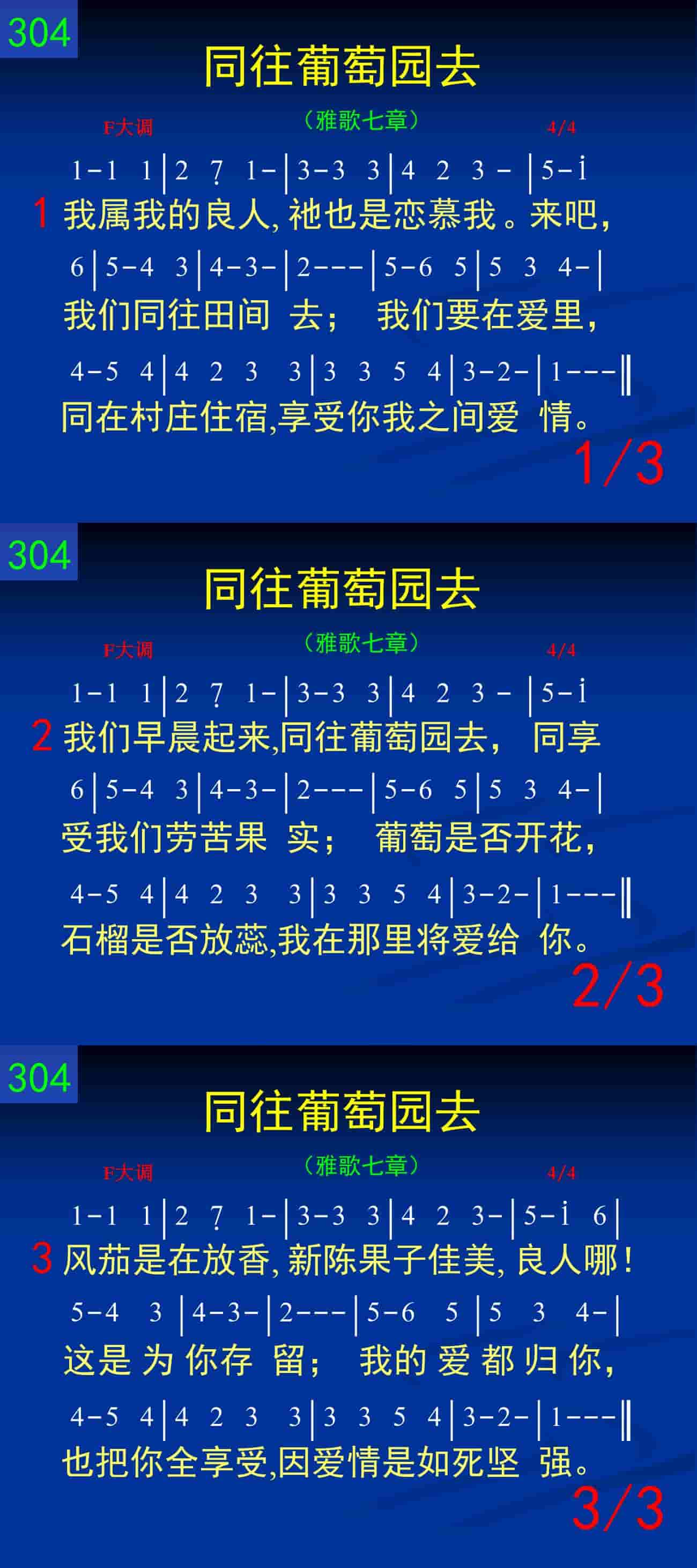 我们早晨起来,同往葡萄园去,同享受我们劳苦果实;葡萄是否开花,石榴是否放蕊,我在那里将爱给你。