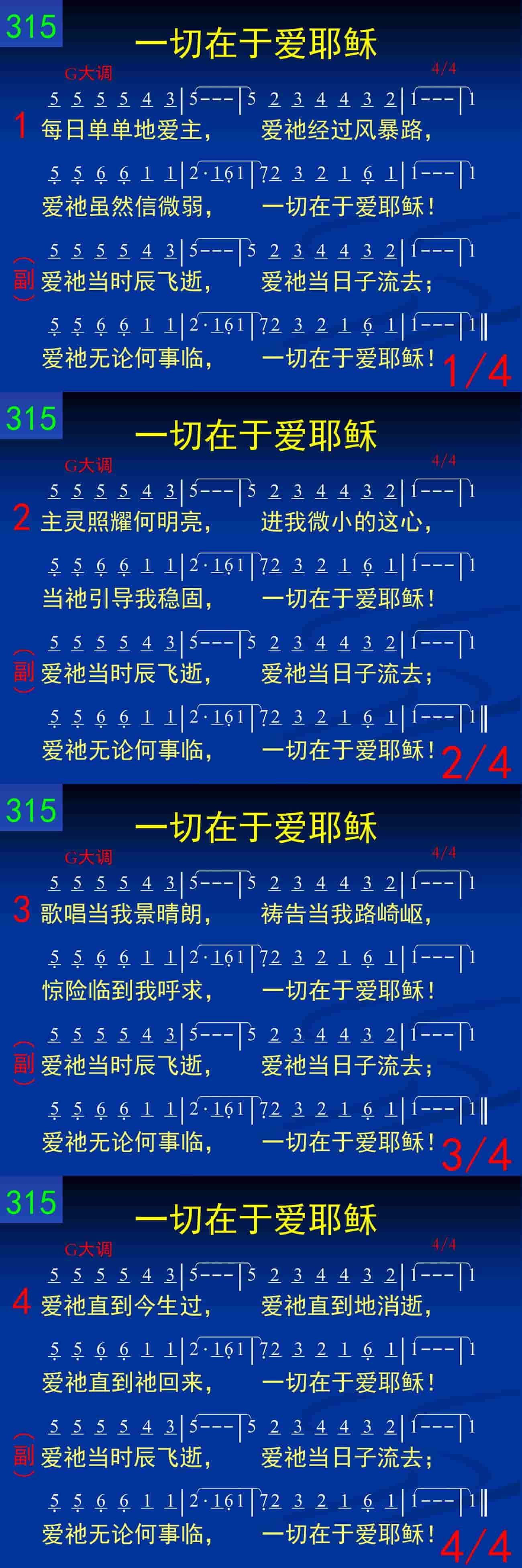 爱祂当时辰飞逝,爱祂当日子流去;爱祂无论何事临,一切在于爱耶稣!