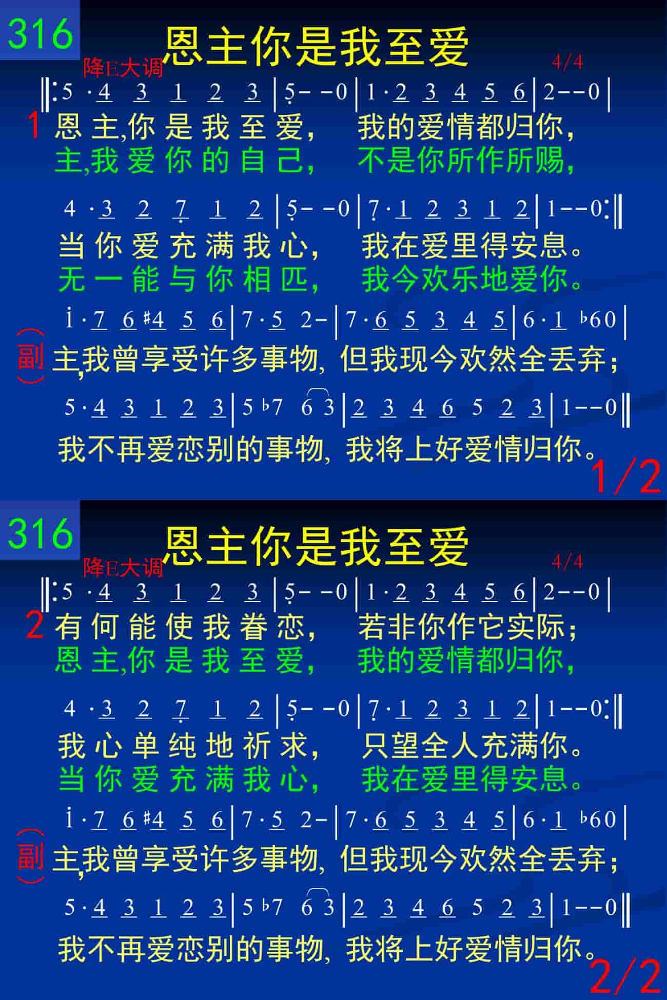 恩主,你是我至爱,我的爱情都归你,当你爱充满我心,我在爱里得安息。主,我爱你的自己,不是你所作所赐,无一能与你相匹,我今欢乐的爱你。