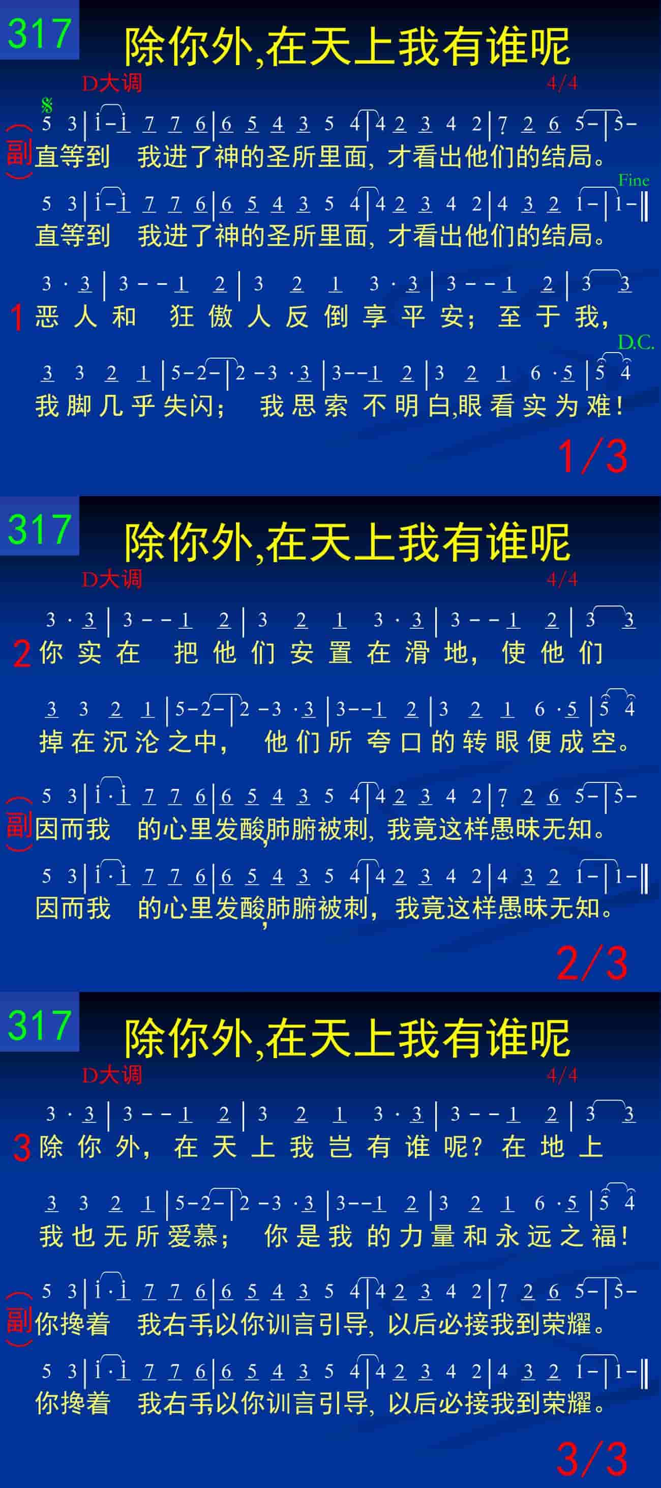 除你外,在天上我岂有谁呢?在地上我也无所爱慕;你是我的力量和永远之福!