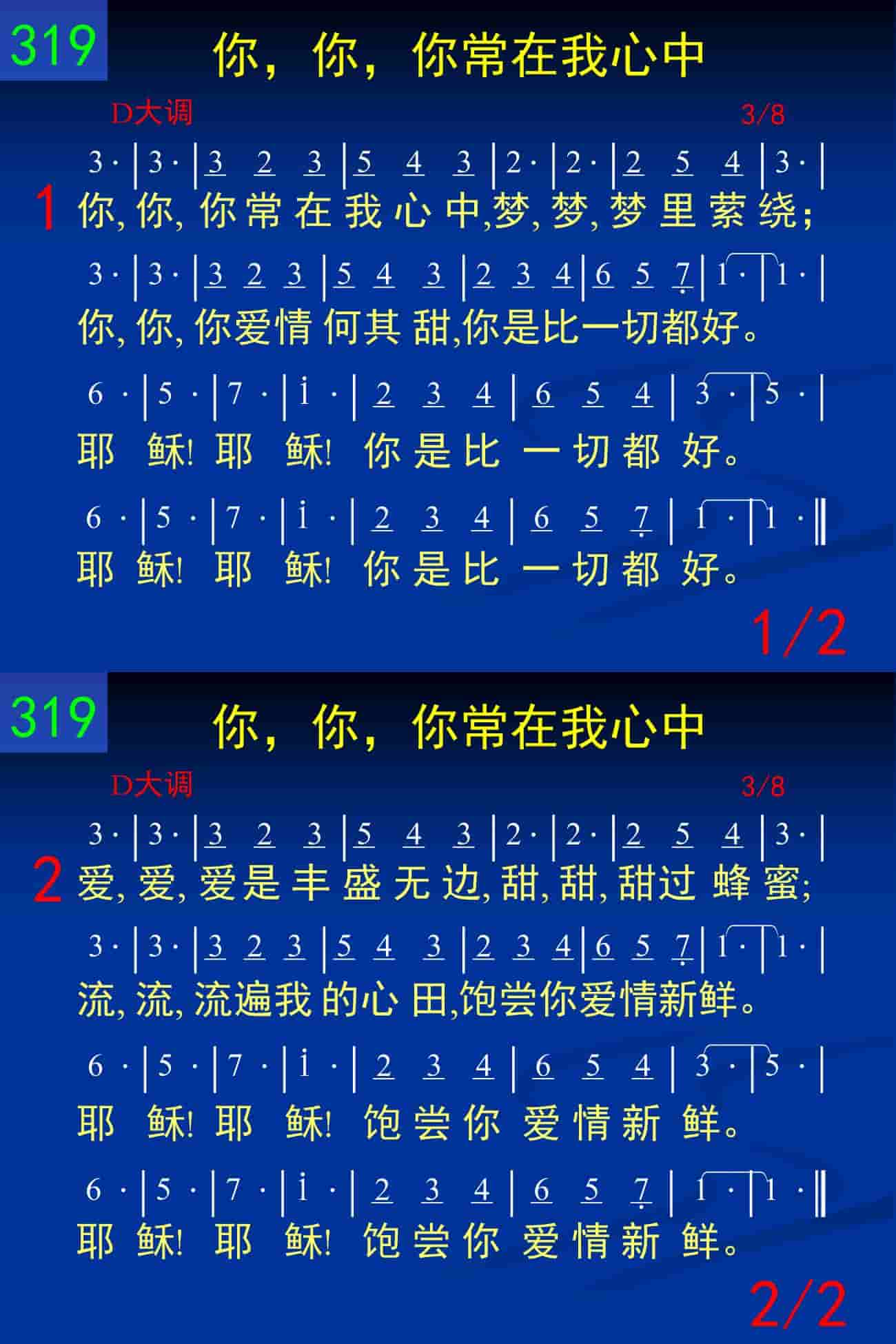你,你,你常在我心中,梦,梦,梦里萦绕;你,你,你爱情何其甜,你是比一切都好。耶稣!耶稣!你是比一切都好。耶稣!耶稣!你是比一切都好。