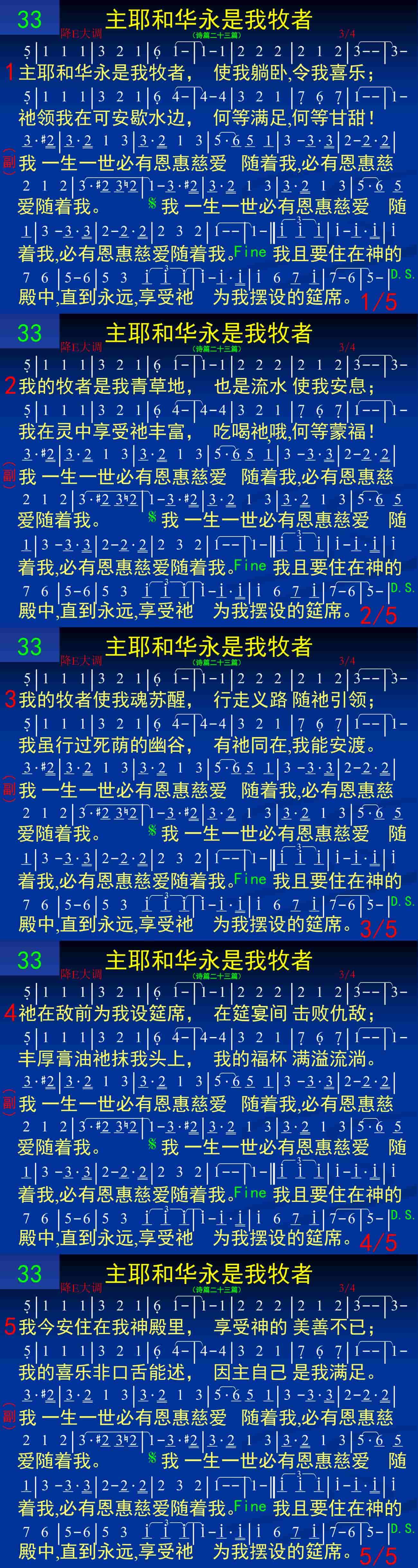 我的牧者使我魂苏醒,行走义路随祂引领;我虽行过死荫的幽谷,有祂同在,我能安渡。