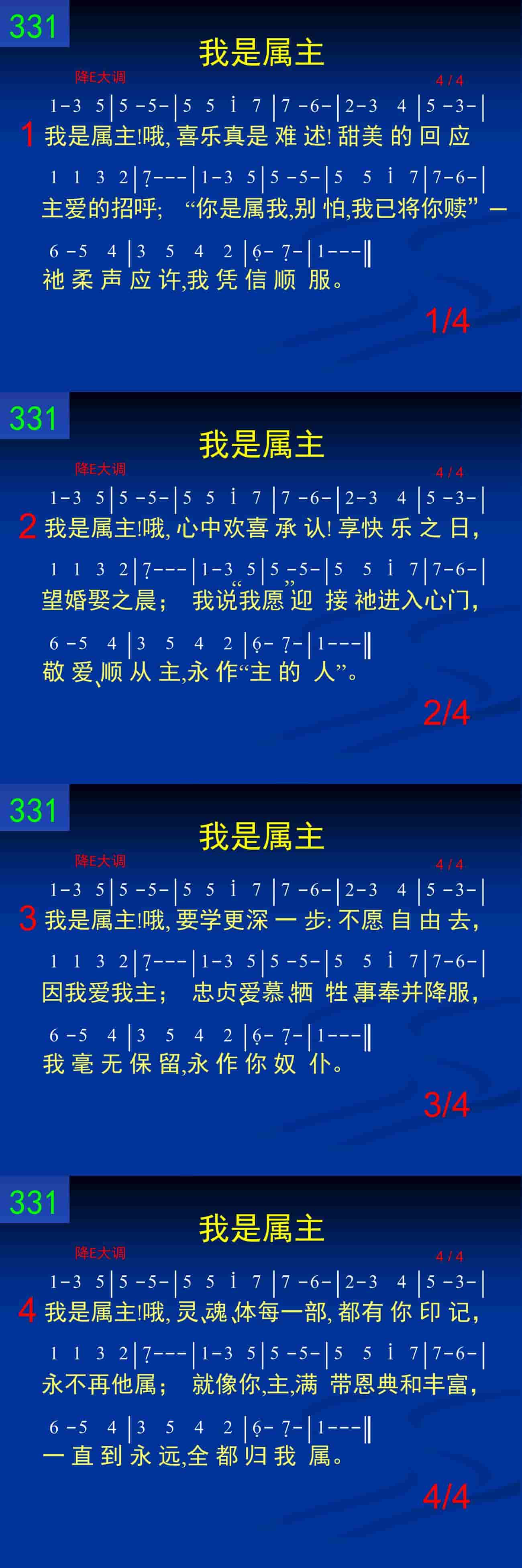 我是属主!哦,灵、魂、体每一部,都有你印记,永不再他属;就像你,主,满带恩典和丰富,一直到永远,全都归我属。