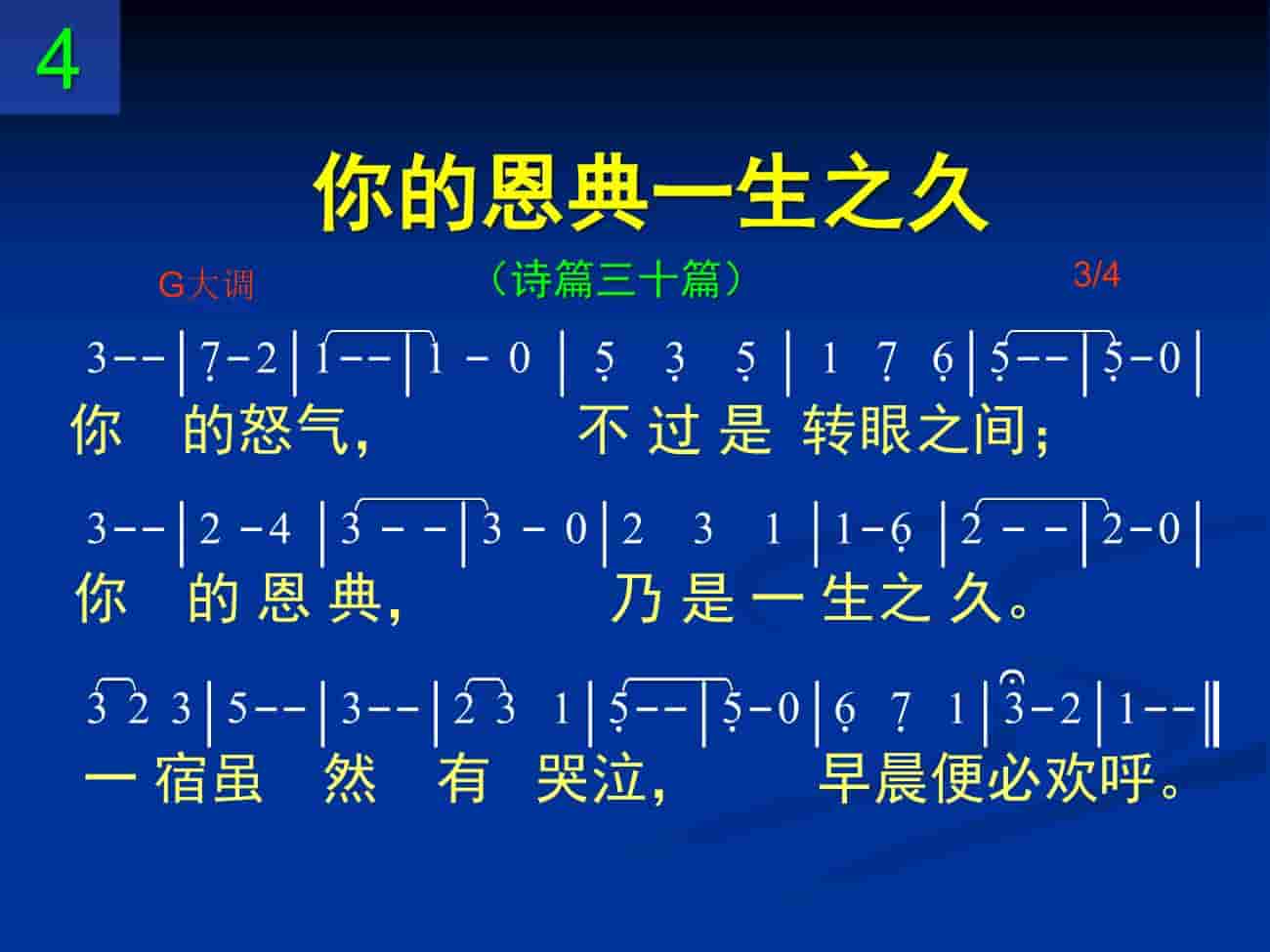 你的怒气,不过是转眼之间;你的恩典,乃是一生之久。一宿虽然有哭泣,早晨便必欢呼。