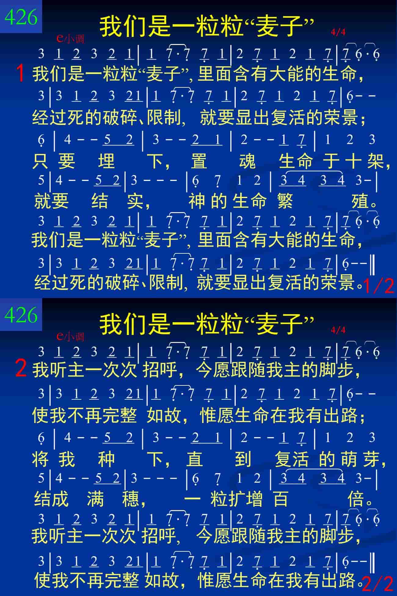 我们是一粒粒“麦子”,里面含有大能的生命,经过死的破碎、限制,就要显出复活的荣景;只要埋下,置魂生命于十架,就要结实,神的生命繁殖。我们是一粒粒“麦子”,里面含有大能的生命,经过死的破碎、限制,就要显出复活的荣景。