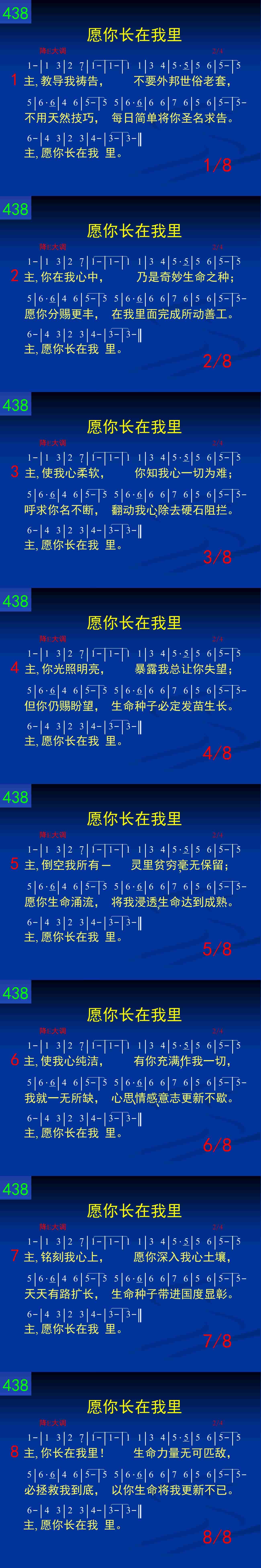 主,你在我心中,乃是奇妙生命之种;愿你分赐更丰,在我里面完成所动善工。主,愿你长在我里。