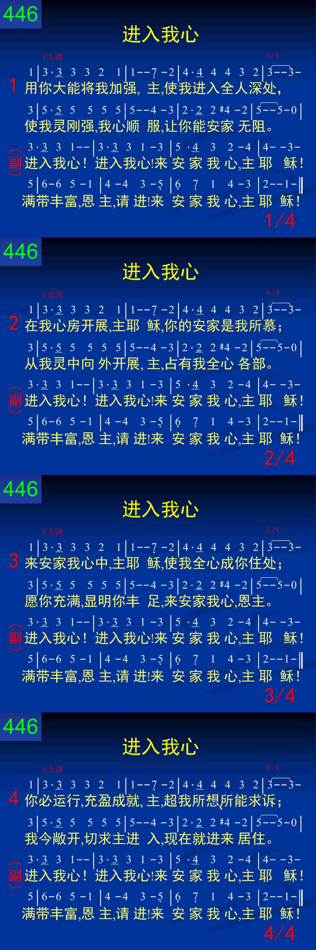 进入我心!进入我心!来安家我心,主耶稣!满带丰富,恩主,请进!来安家我心,主耶稣!