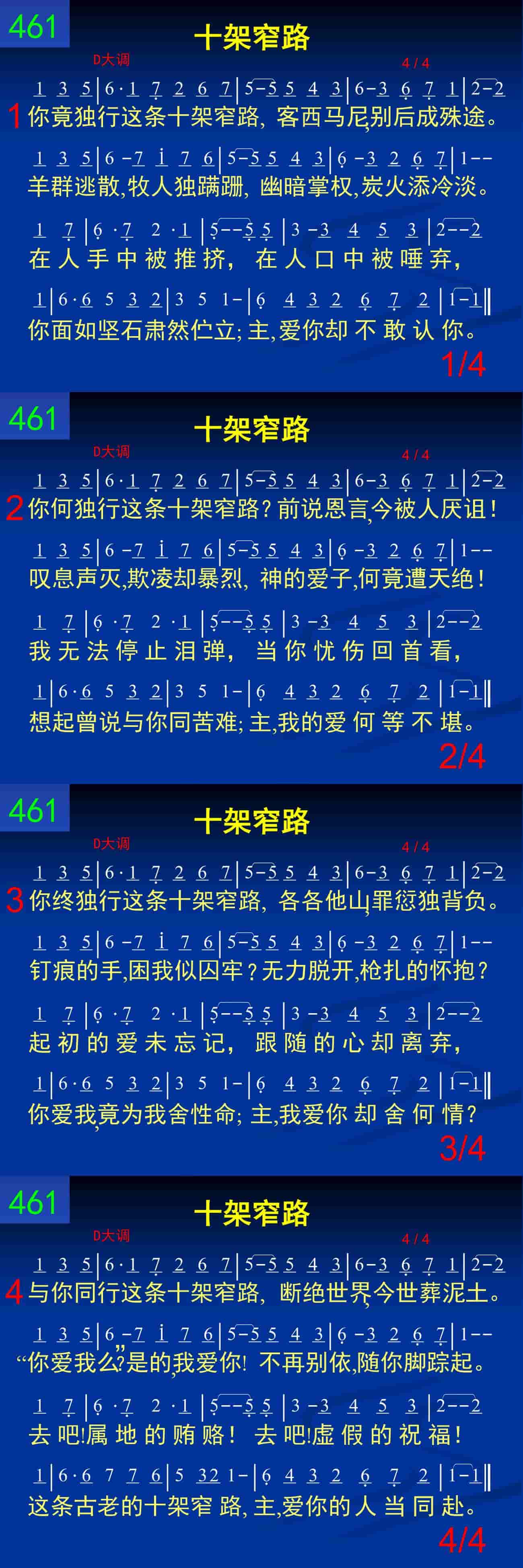你何独行这条十架窄路?前说恩言,今被人厌诅!叹息声灭,欺凌却暴烈,神的爱子,何竟遭天绝!