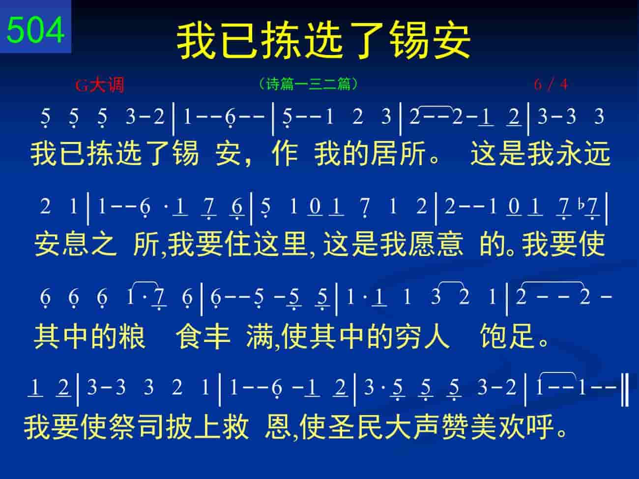 我已拣选了锡安,作我的居所。这是我永远安息之所,我要住这里,这是我愿意的。我要使其中的粮食丰满,使其中的穷人饱足。我要使祭司披上救恩,使圣民大声赞美欢呼。