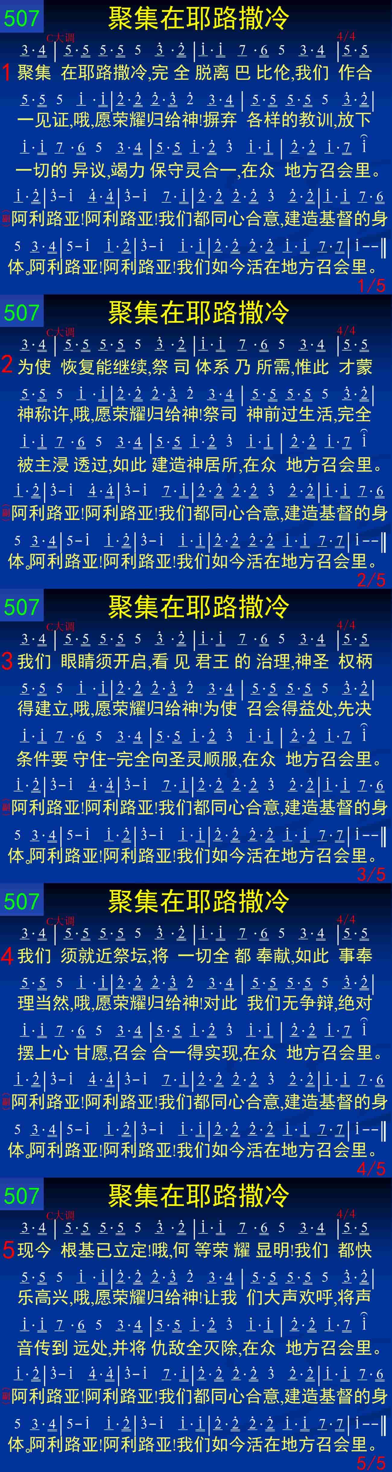 聚集在耶路撒冷,完全脱离巴比伦,我们作合一见证,哦,愿荣耀归给神!摒弃各样的教训,放下一切的异议,竭力保守灵合一,在众地方召会里。