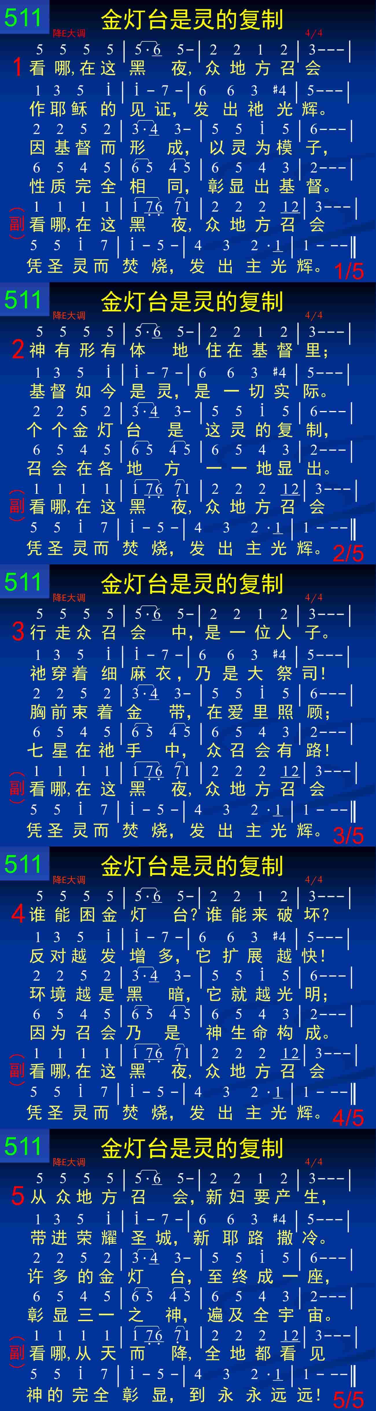 从众地方召会,新妇要产生,带进荣耀圣城,新耶路撒冷。许多的金灯台,至终成一座,彰显三一之神,遍及全宇宙。