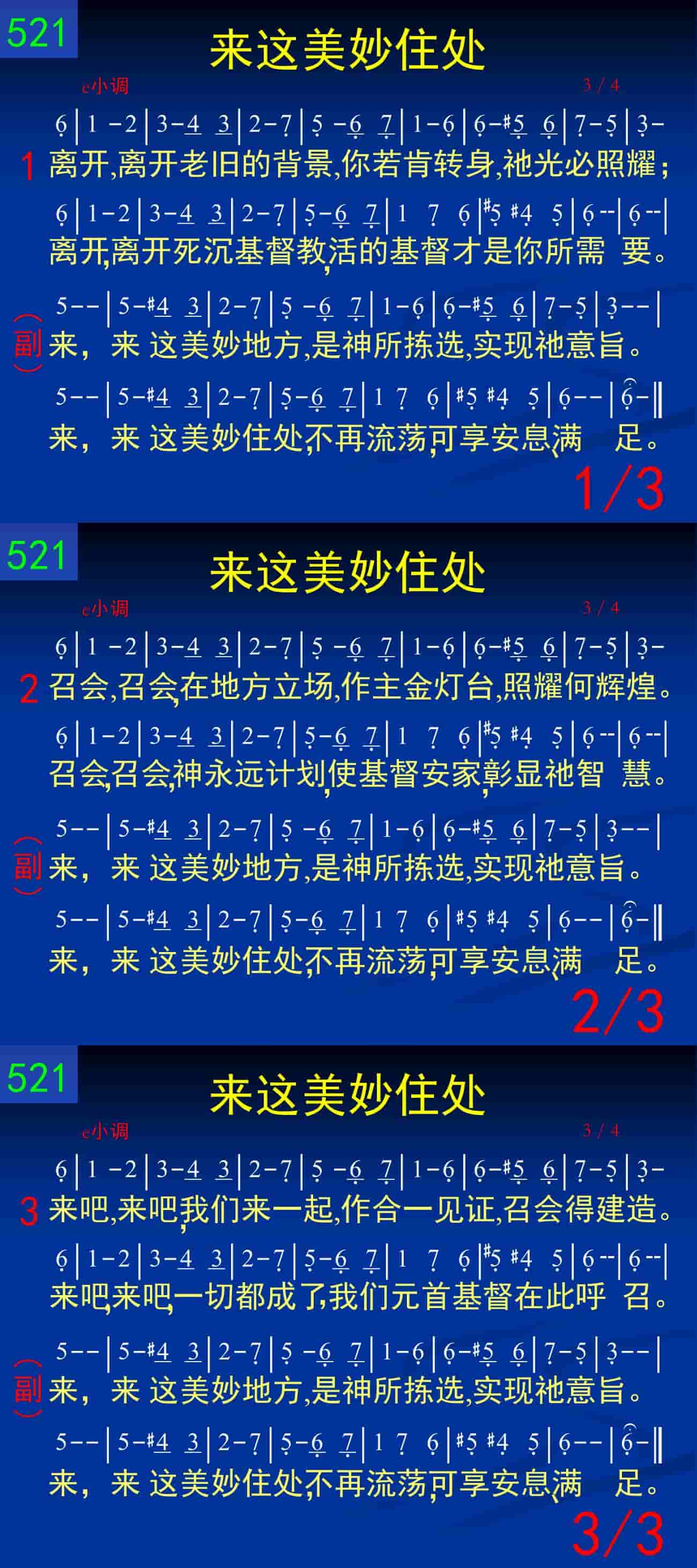 来,来这美妙地方,是神所拣选,实现祂意旨。来,来这美妙住处,不再流荡,可享安息、满足。