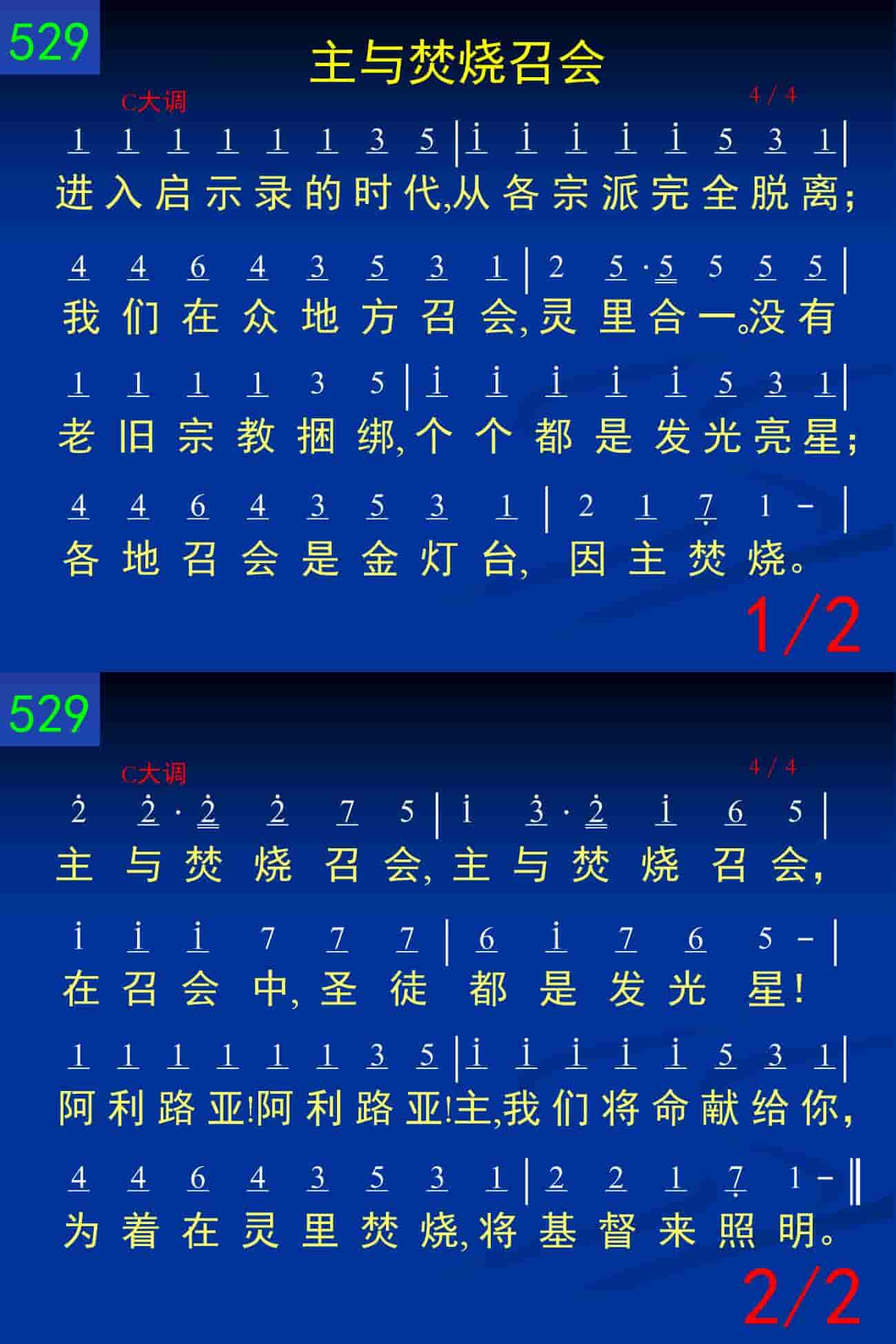 进入启示录的时代,从各宗派完全脱离;我们在众地方召会,灵里合一。没有老旧宗教捆绑,个个都是发光亮星;各地召会是金灯台,因主焚烧。主与焚烧召会,主与焚烧召会,在召会中,圣徒都是发光星!阿利路亚!阿利路亚!主,我们将命献给你,为着在灵里焚烧,将基督来照明。
