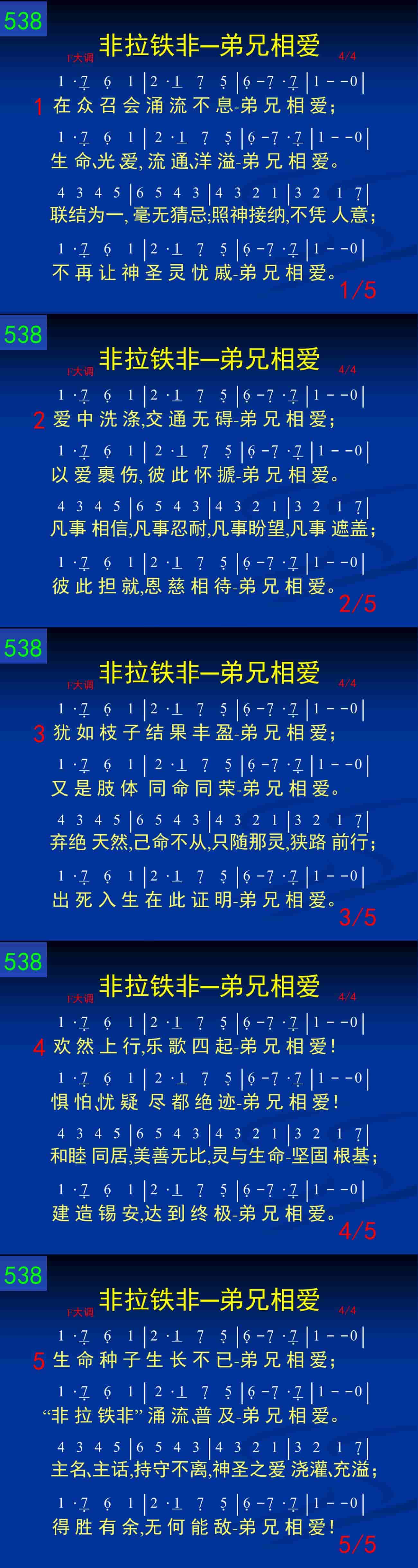 生命种子生长不已——弟兄相爱;“非拉铁非”涌流、普及——弟兄相爱。主名、主话,持守不离,神圣之爱浇灌、充溢;得胜有余,无何能敌——弟兄相爱!