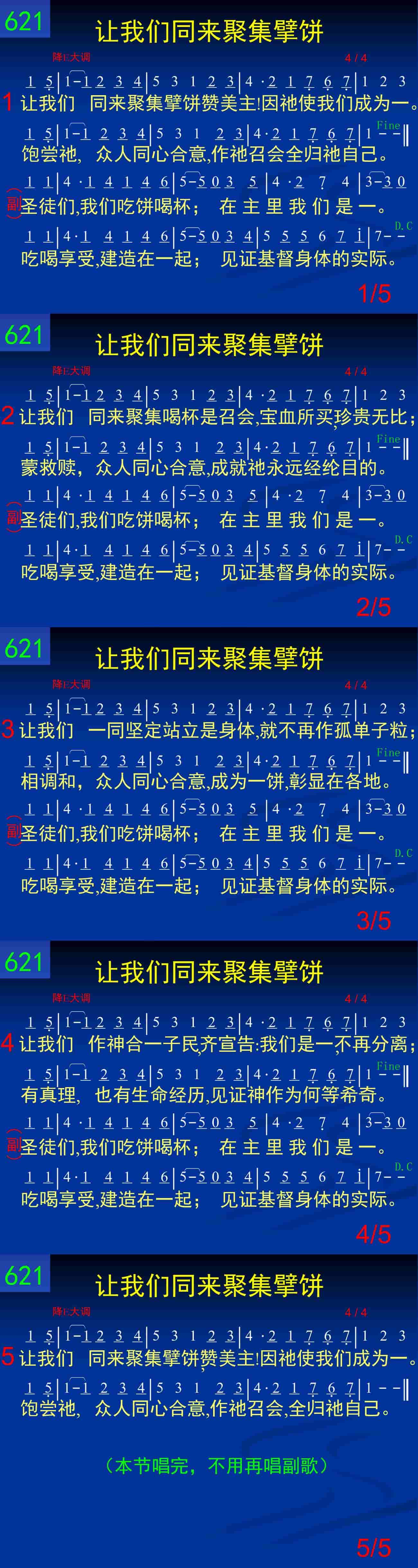 让我们同来聚集擘饼赞美主!因祂使我们成为一。饱尝祂,众人同心合意,作祂召会全归祂自己。