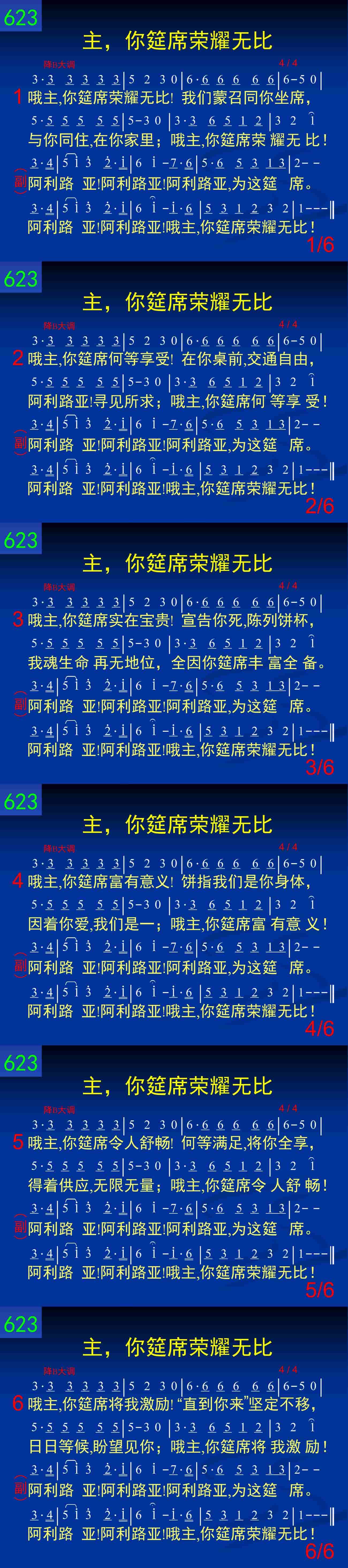 阿利路亚!阿利路亚!阿利路亚,为这筵席。阿利路亚!阿利路亚!哦主,你筵席荣耀无比!