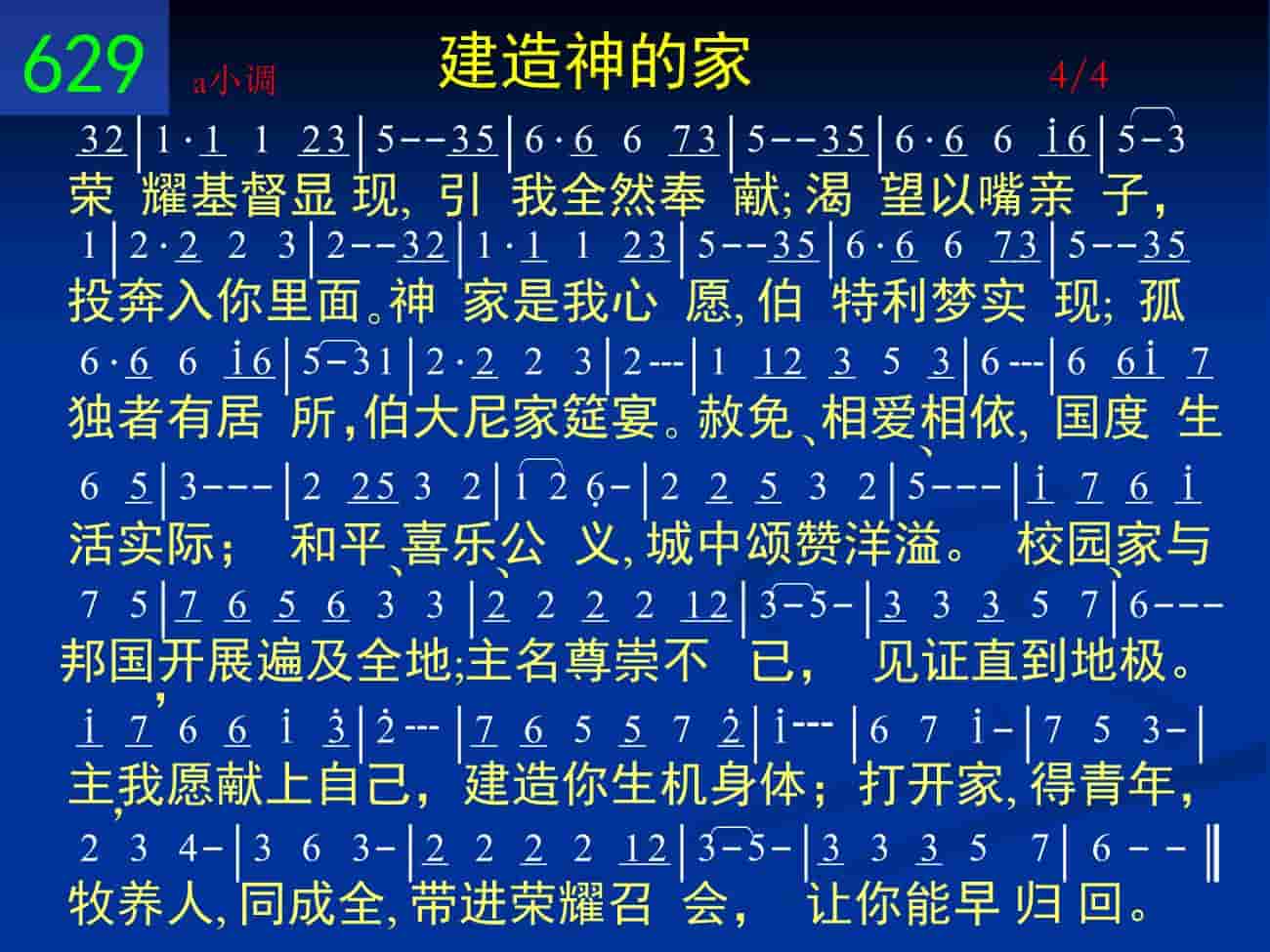 荣耀基督显现,引我全然奉献;渴望以嘴亲子,投奔入你里面。神家是我心愿,伯特利梦实现;孤独者有居所伯大尼家筵宴。赦免、相爱、相依,国度生活实际;和平、喜乐、公义,城中颂赞洋溢。校园、家与邦国,开展偏及全地;主名尊崇不已见证直到地极。