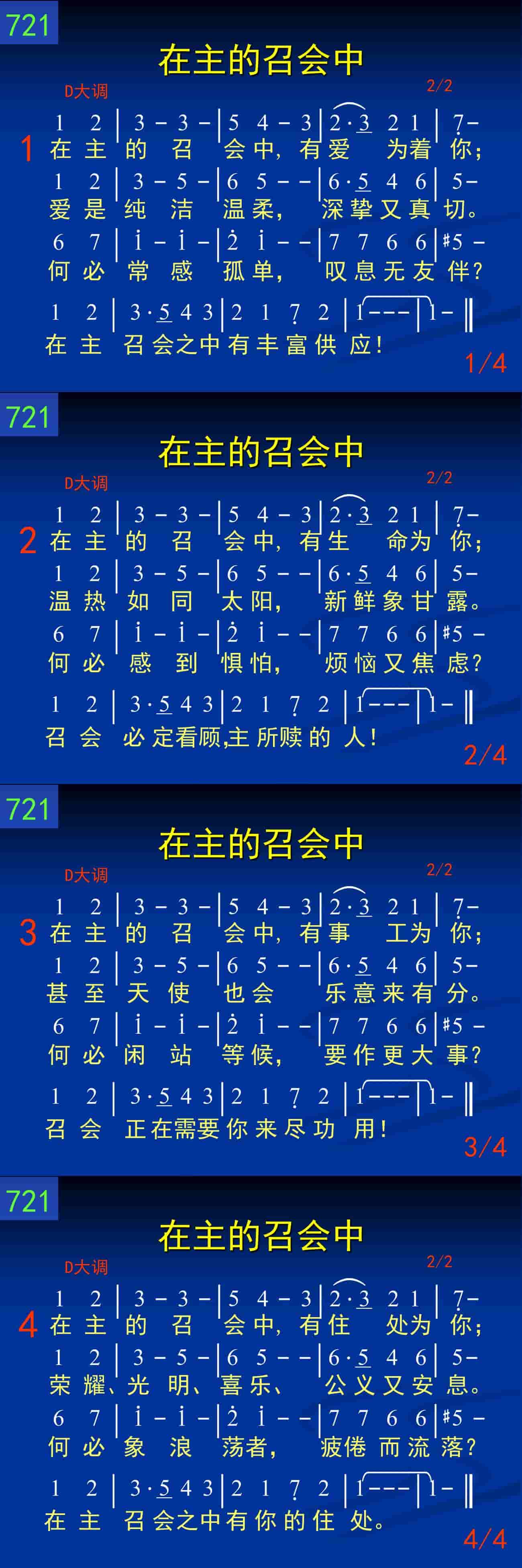 在主的召会中,有住处为你;荣耀、光明、喜乐、公义又安息。何必像浪荡者;疲倦而流落?在主召会之中有你的住处。