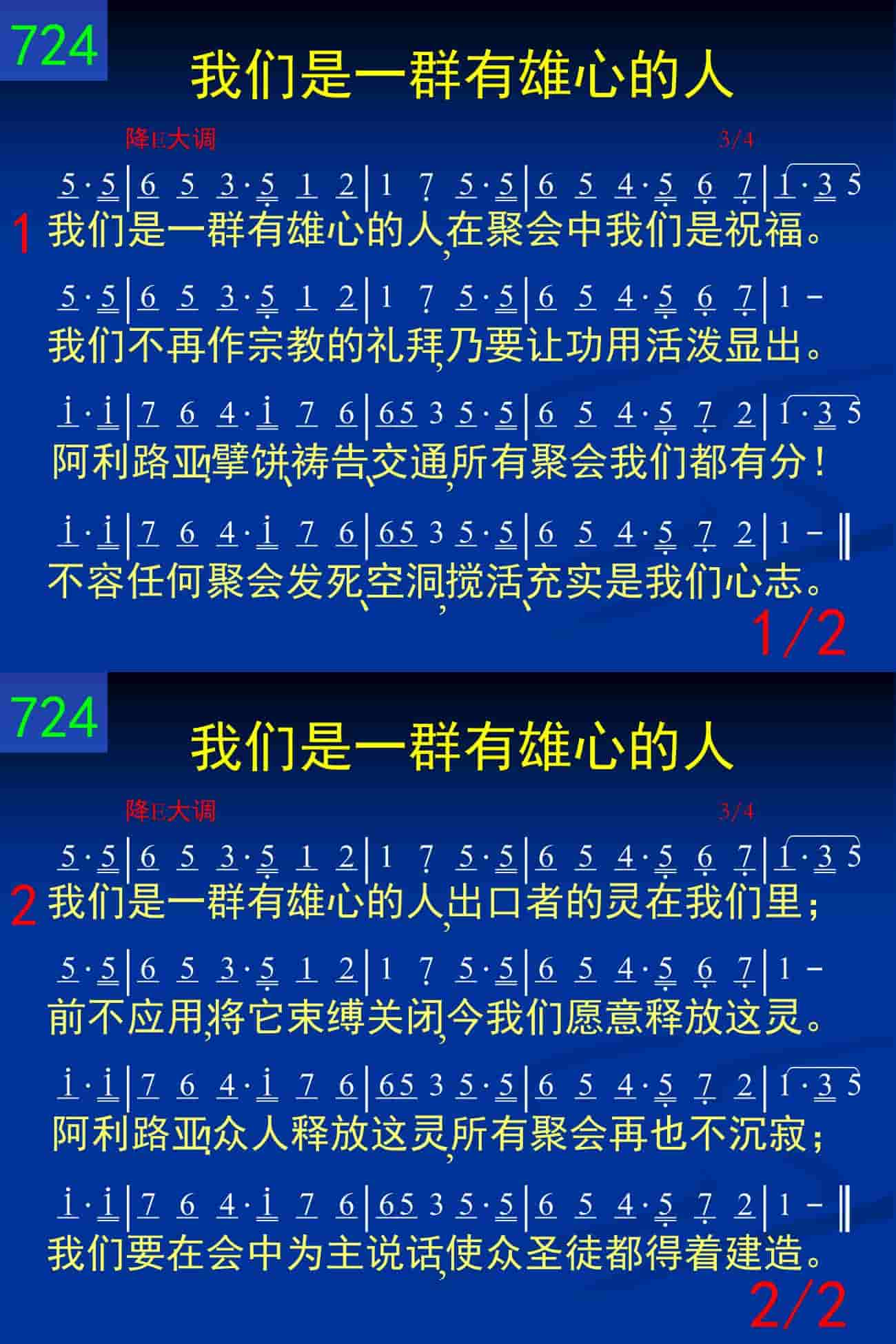 我们是一群有雄心的人,出口者的灵在我们里;前不应用,将它束缚关闭,今我们愿意释放这灵。阿利路亚!众人释放这灵,所有聚会再也不沉寂;我们要在会中为主说话,使众圣徒都得着建造。