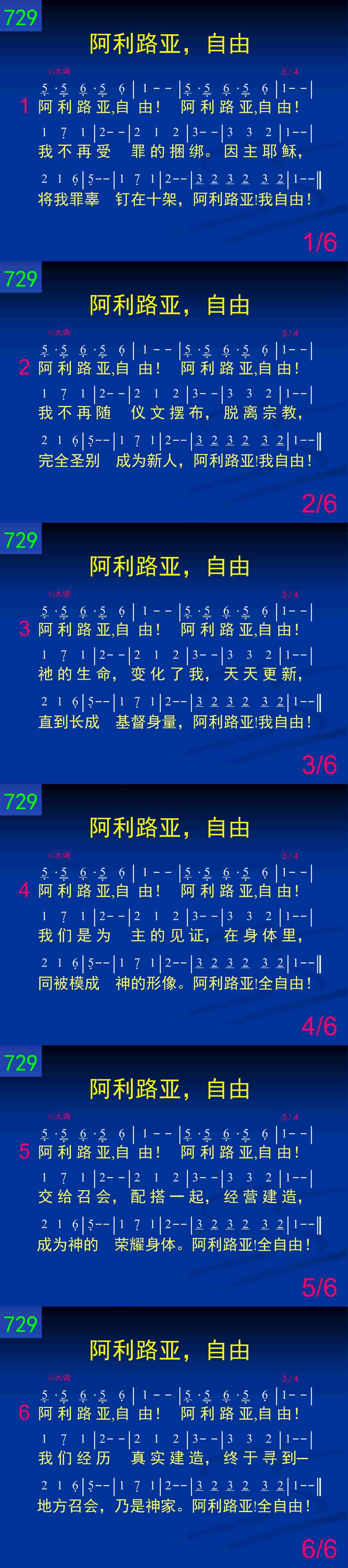 阿利路亚,自由!阿利路亚,自由!我们是为主的见证,在身体里,同被模成神的形像。阿利路亚!全自由!