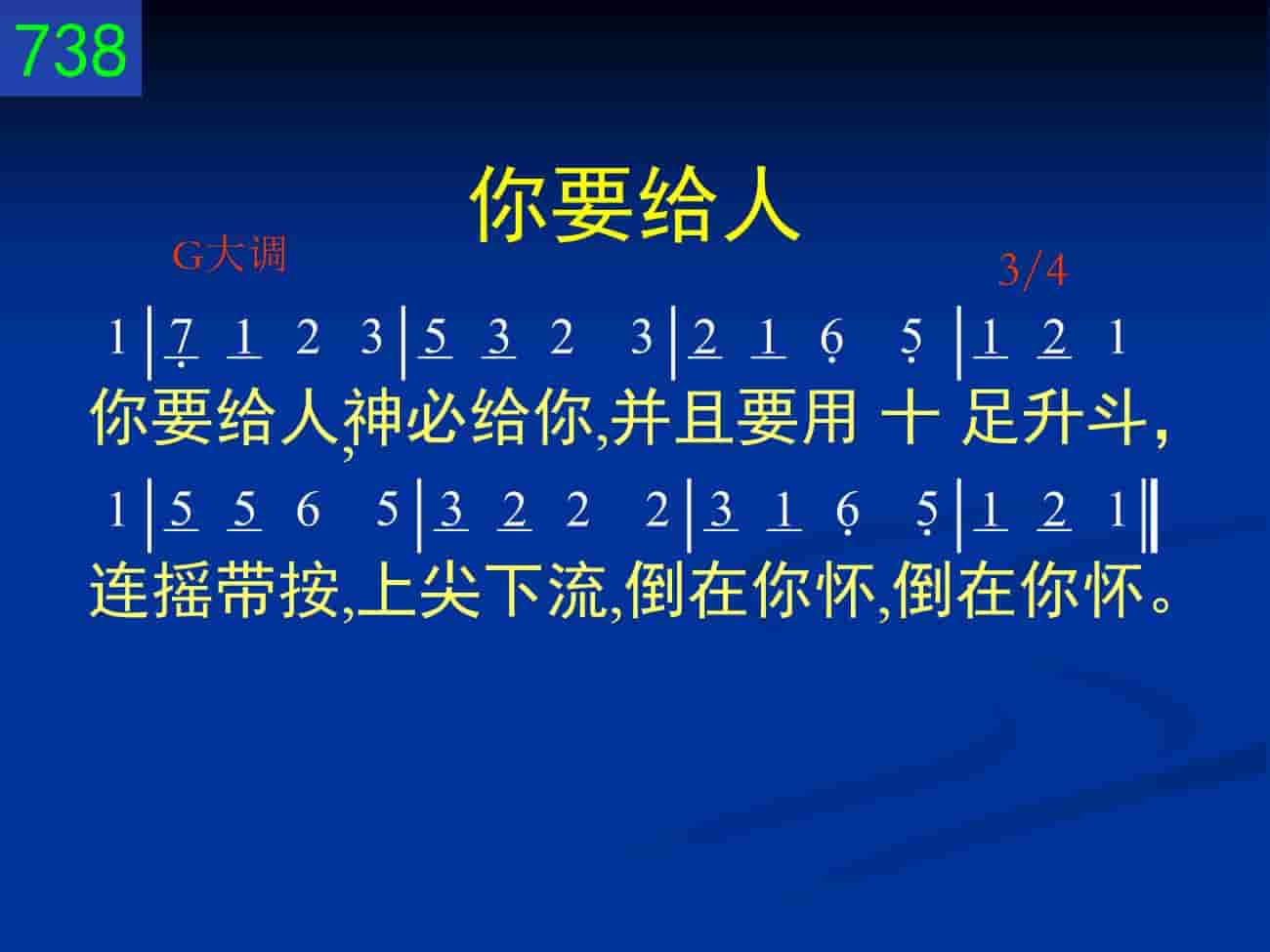 你要给人神必给你,并且要用十足升斗,连摇带按,上尖下流,倒在你怀,倒在你怀。