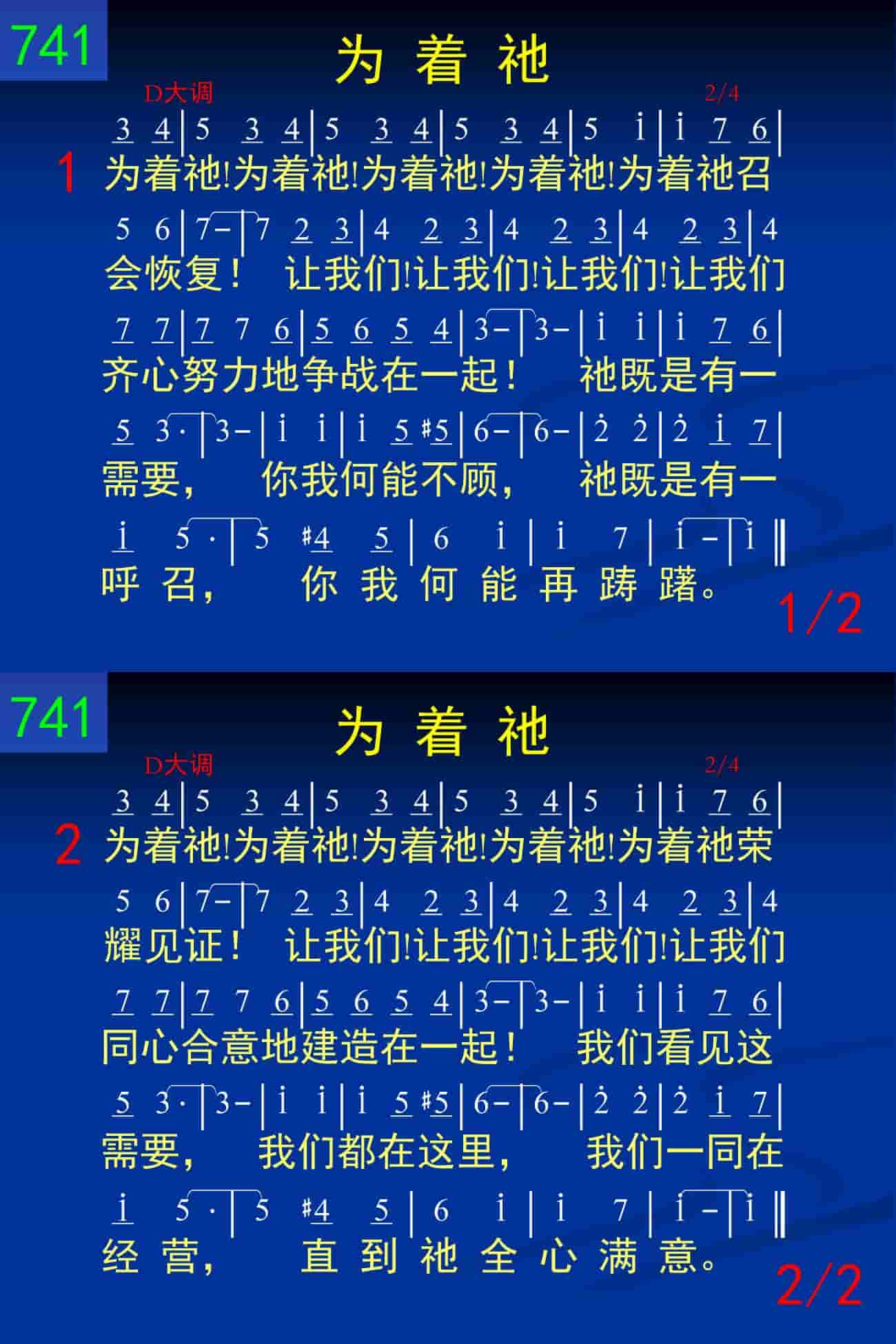 为着祂!为着祂!为着祂!为着祂!为着祂召会恢复!让我们!让我们!让我们!让我们齐心努力的争战在一起!祂既是有一需要,你我何能不顾,祂既是有一呼召,你我何能再踌躇。