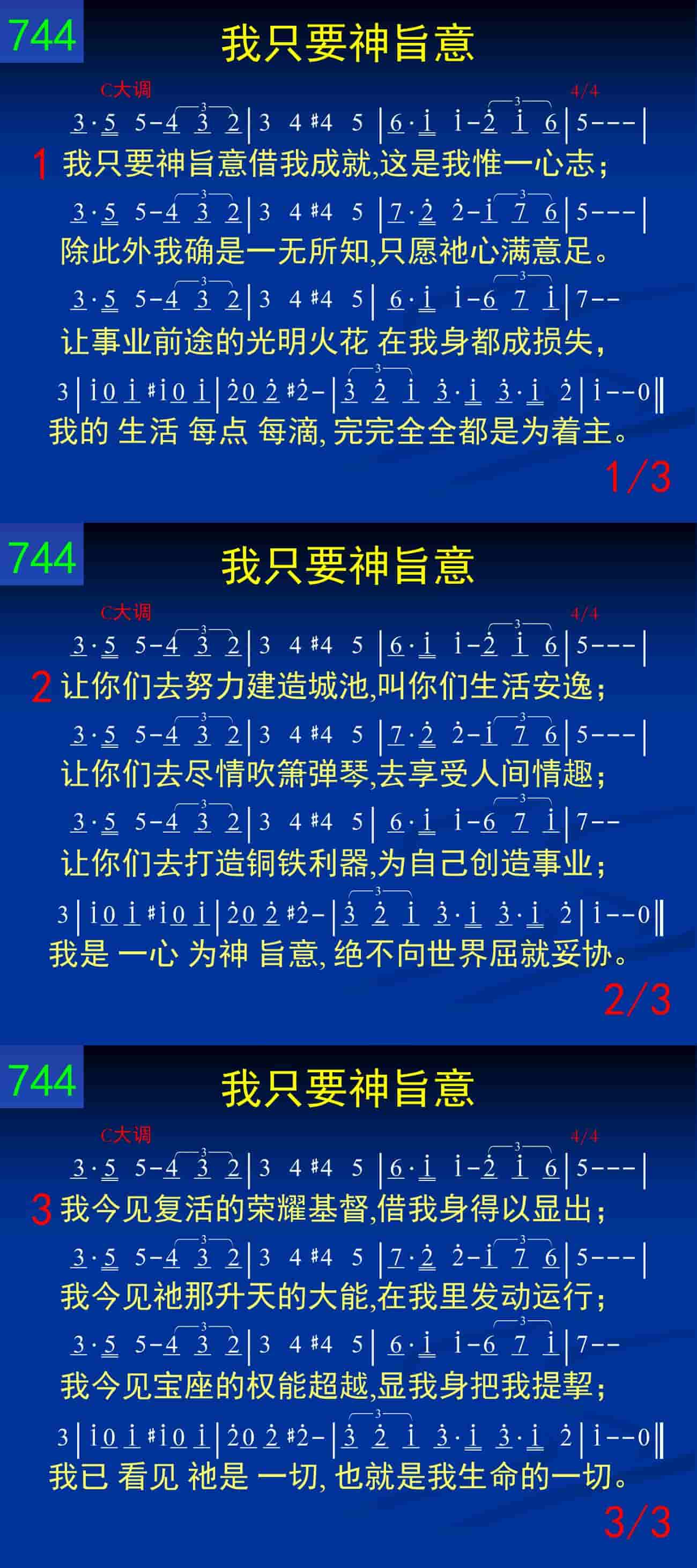 我只要神旨意借我成就,这是我唯一心志;除此外我确是一无所知,只愿祂心满意足。让事业前途的光明火花在我身都成损失,我的生活每点每滴,完完全全都是为着主。