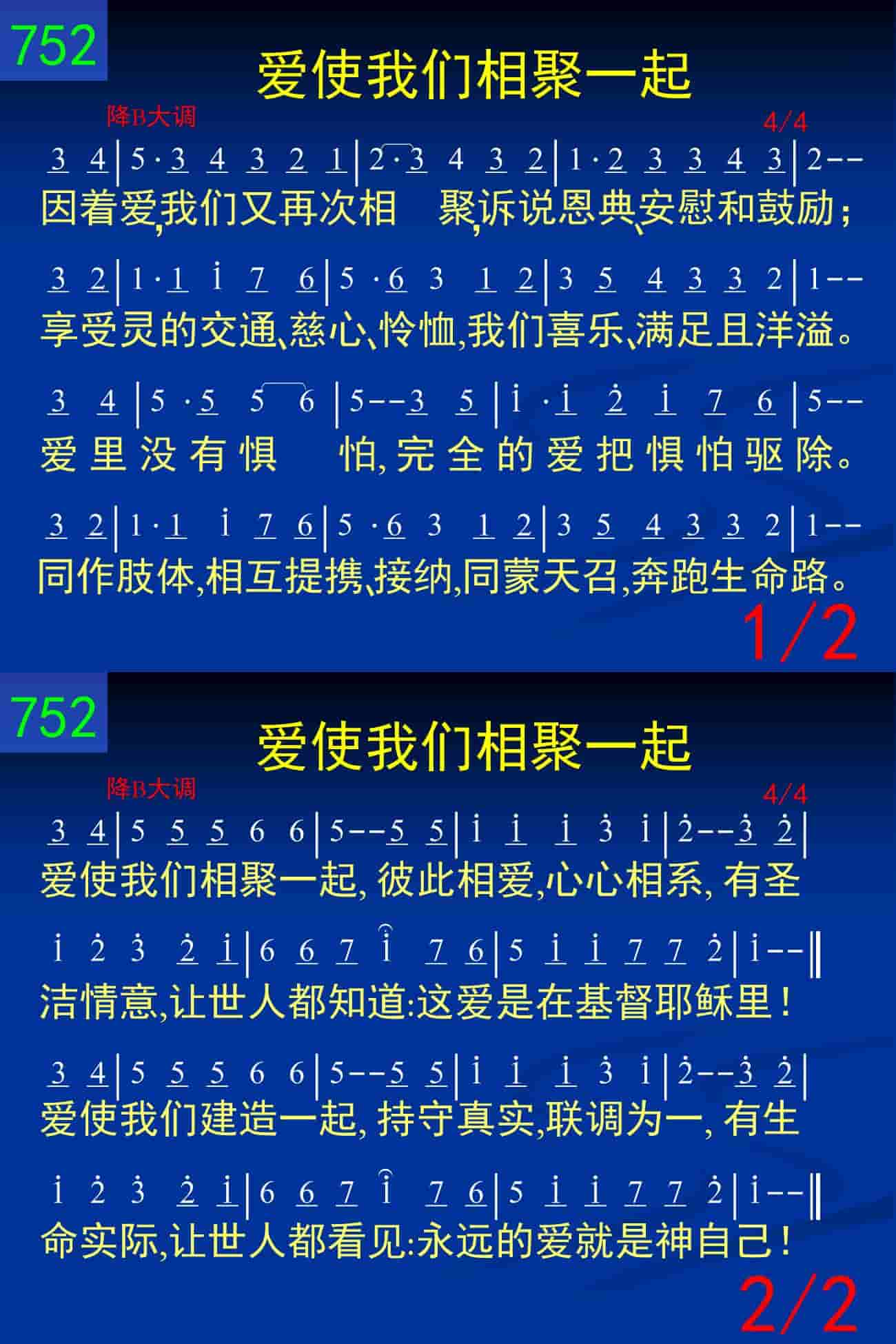 因着爱,我们又再次相聚,诉说恩典、安慰和鼓励;享受灵的交通、慈心、怜恤,我们喜乐、满足且洋溢。爱里没有惧怕,完全的爱把惧怕驱除。同作肢体,相互提携、接纳,同蒙天召,奔跑生命路。爱使我们相聚一起,彼此相爱,心心相系,有圣洁情意,让世人都知道:这爱是在基督耶稣里!爱使我们建造一起,持守真实,联调为一,有生命实际,让世人都看见:永远的爱就是神自己!