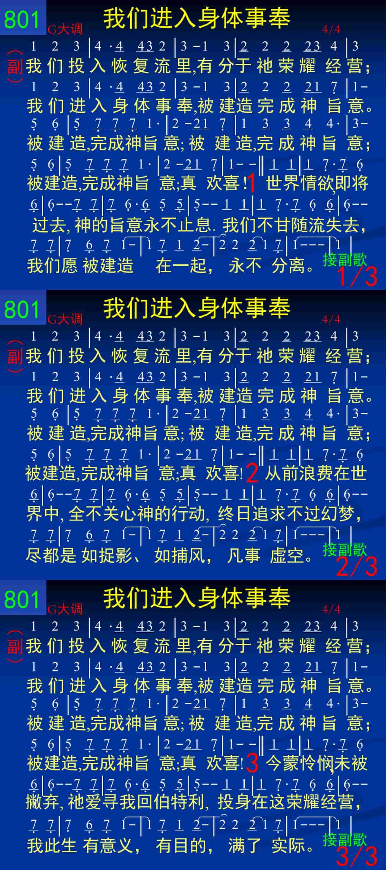 我们投入恢复流里,有分于祂荣耀经营;我们进入身体事奉,被建造完成神旨意。被建造,完成神旨意;被建造,完成神旨意;被建造,完成神旨意;真欢喜!
