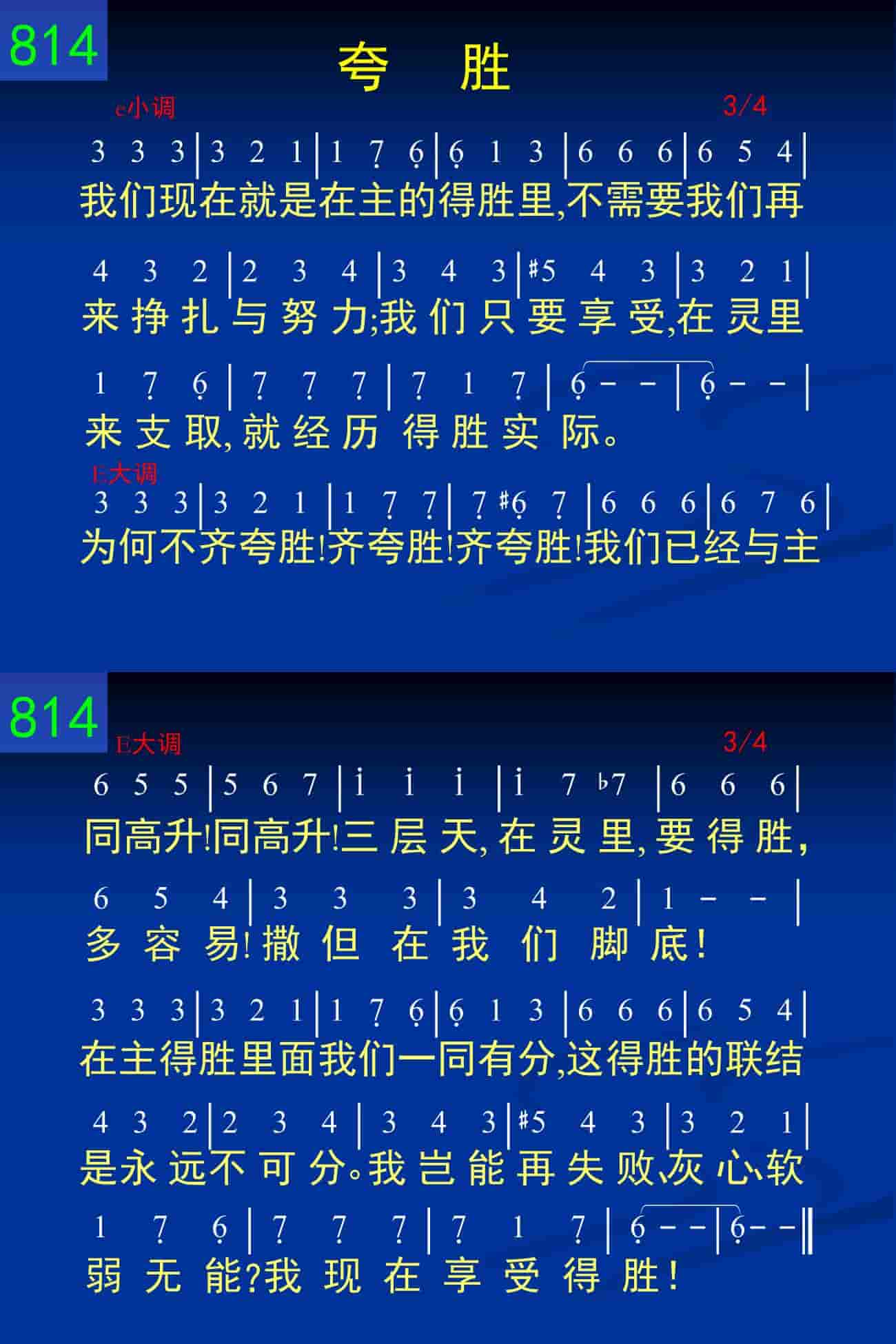 我们现在就是在主的得胜里,不需要我们再来挣扎与努力;我们只要享受,在灵里来支取,就经历得胜实际。为何不齐夸胜!齐夸胜齐夸胜!我们已经与主同高升!同高升!三层天,在灵里,要得胜,多容易!撒但在我们脚底!在主得胜里面我们一同有分,这得胜的联结是永远不可分。我岂能再失败、灰心,软弱无能?我现在享受得胜!