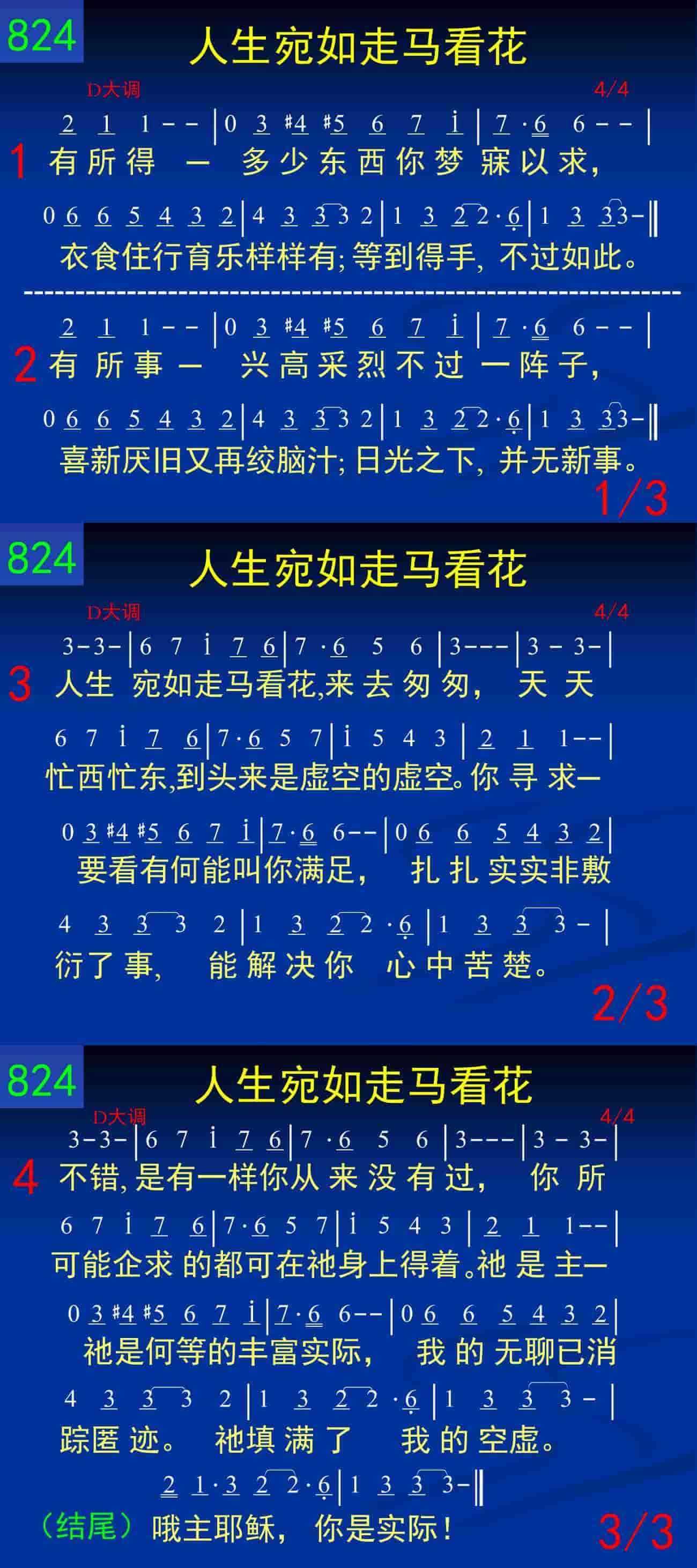 人生宛如走马看花,来去匆匆,天天忙西忙东,到头来是虚空的虚空。你寻求——要看有何能叫你满足,扎扎实实非敷衍了事,能解决你心中苦楚。