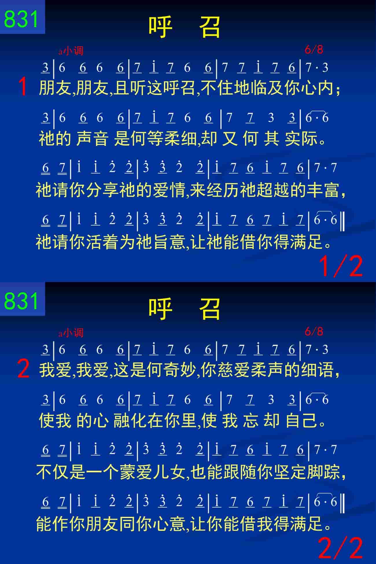 朋友,朋友,且听这呼召,不住地临及你心内;祂的声音是何等柔细,却又何其实际。祂请你分享祂的爱情,来经历祂超越的丰富,祂请你活着为祂旨意,让祂能借你得满足。