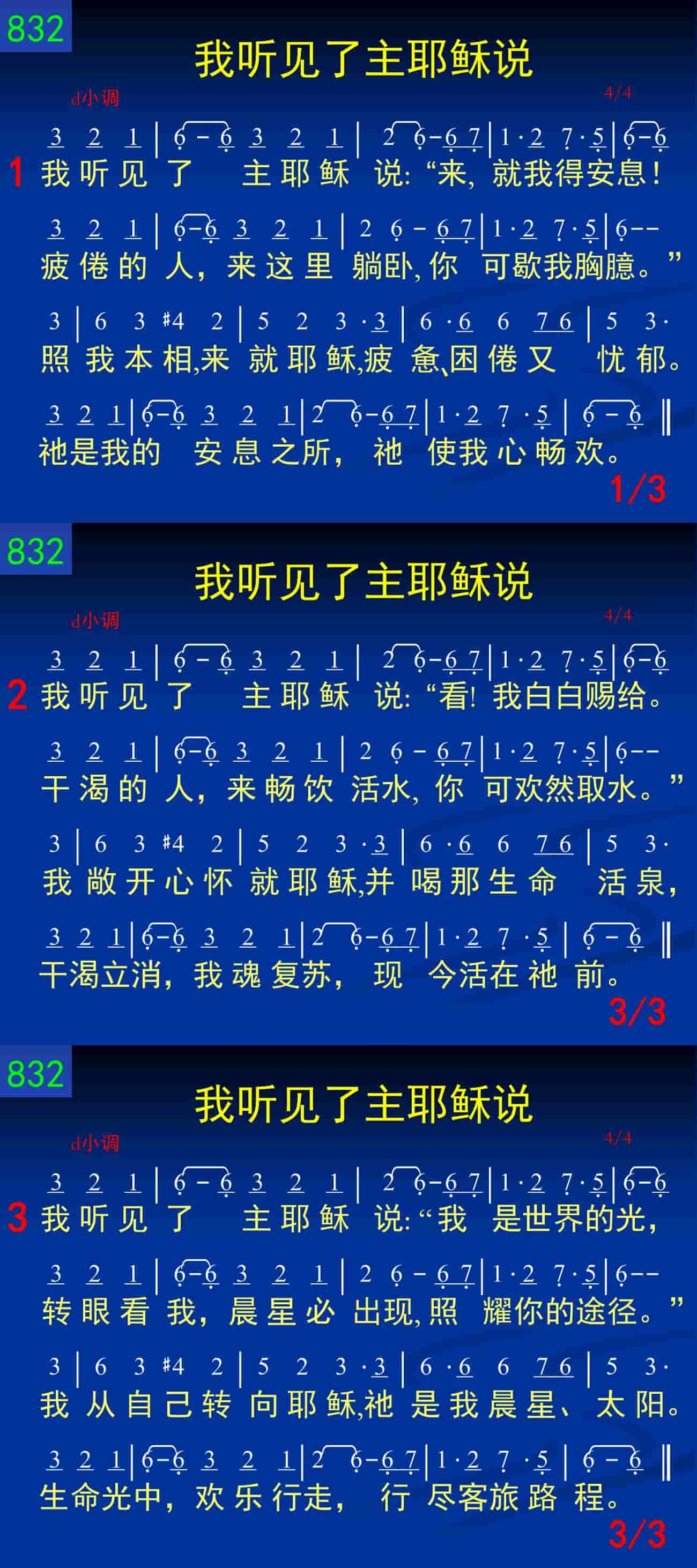 我听见了主耶稣说:“我是世界的光,转眼看我,晨星必出现,照耀你的途径。”我从自己转向耶稣,祂是我晨星、太阳。生命光中,欢乐行走,行尽客旅路程。