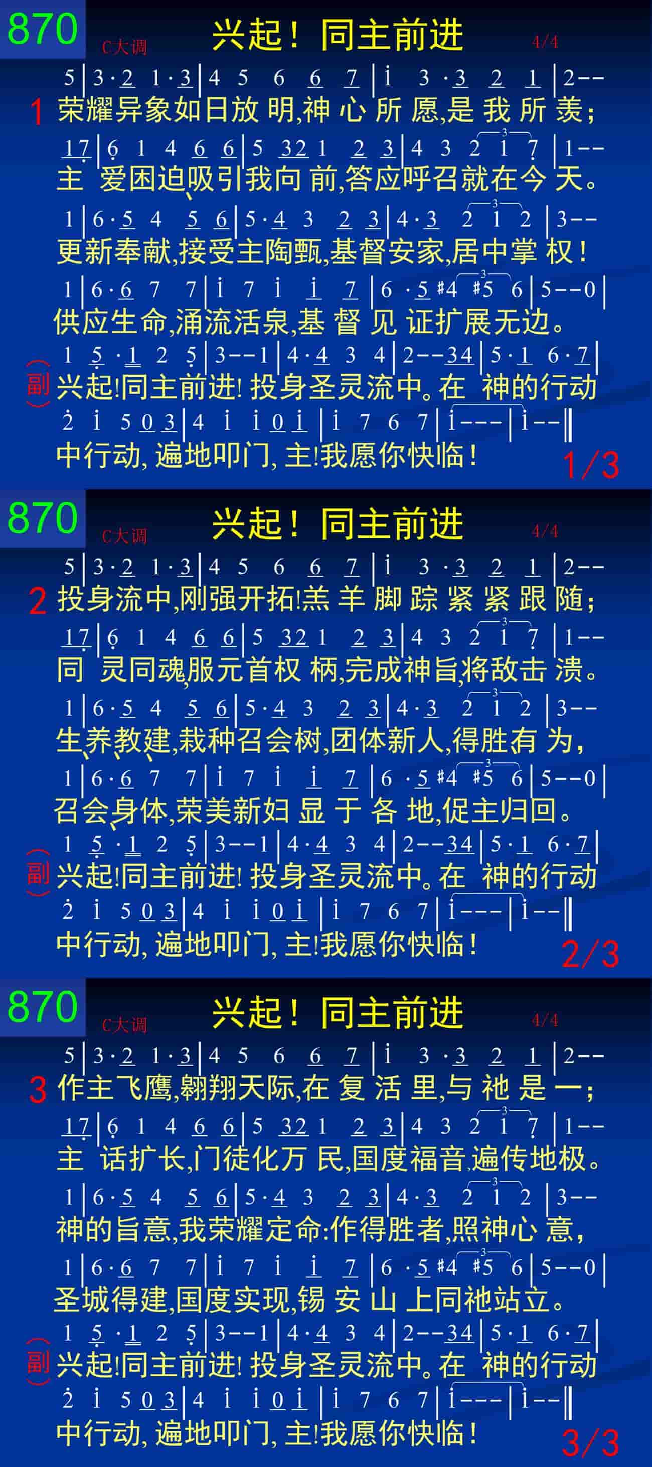 兴起!同主前进!投身圣灵流中。在神的行动中行动,遍地叩门,主!我愿你快临!