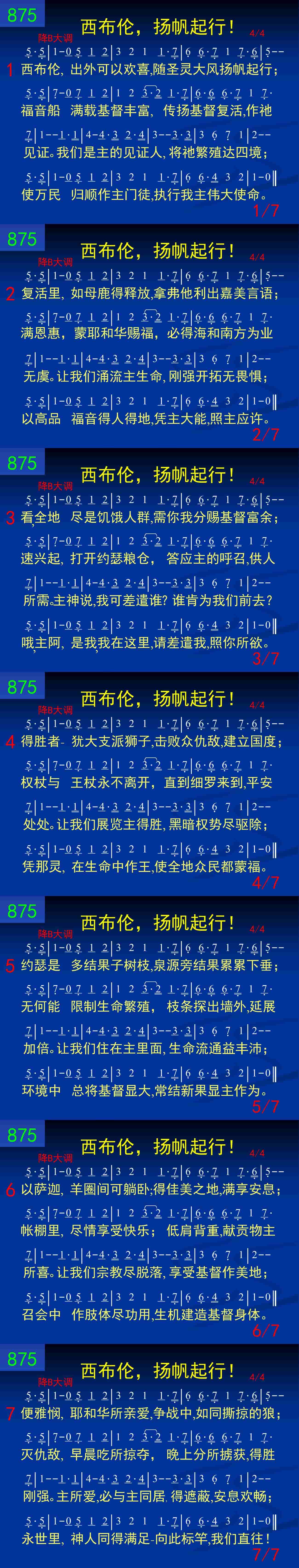 西布伦,出外可以欢喜,随圣灵大风扬帆起行;福音船满载基督丰富,传扬基督复活,作祂见证。我们是主的见证人,将祂繁殖达四境;使万民归顺作主门徒,执行我主伟大使命。