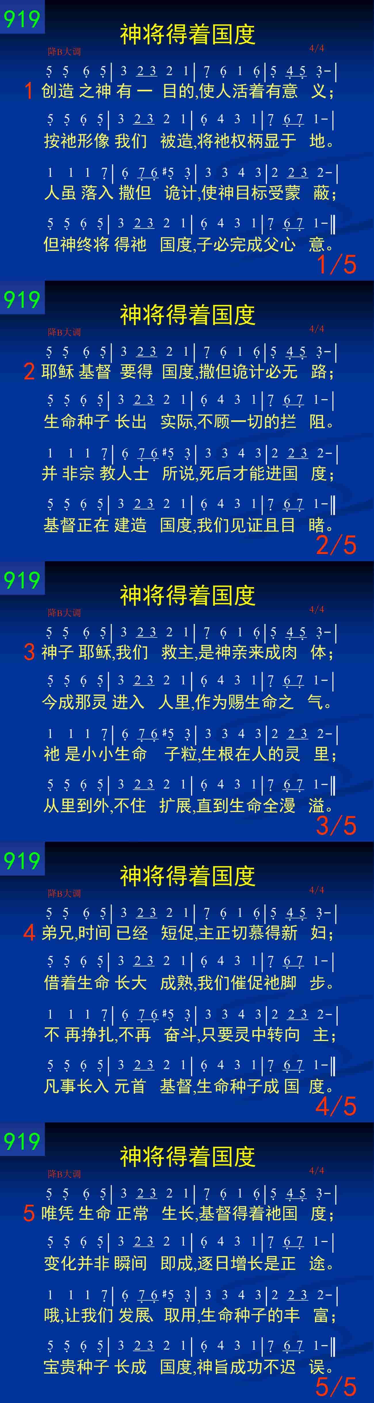 耶稣基督要得国度,撒但诡计必无路;生命种子长出实际,不顾一切的栏阻。并非宗教人士所说,死后才能进国度;基督正在建造国度,我们见证且目睹。