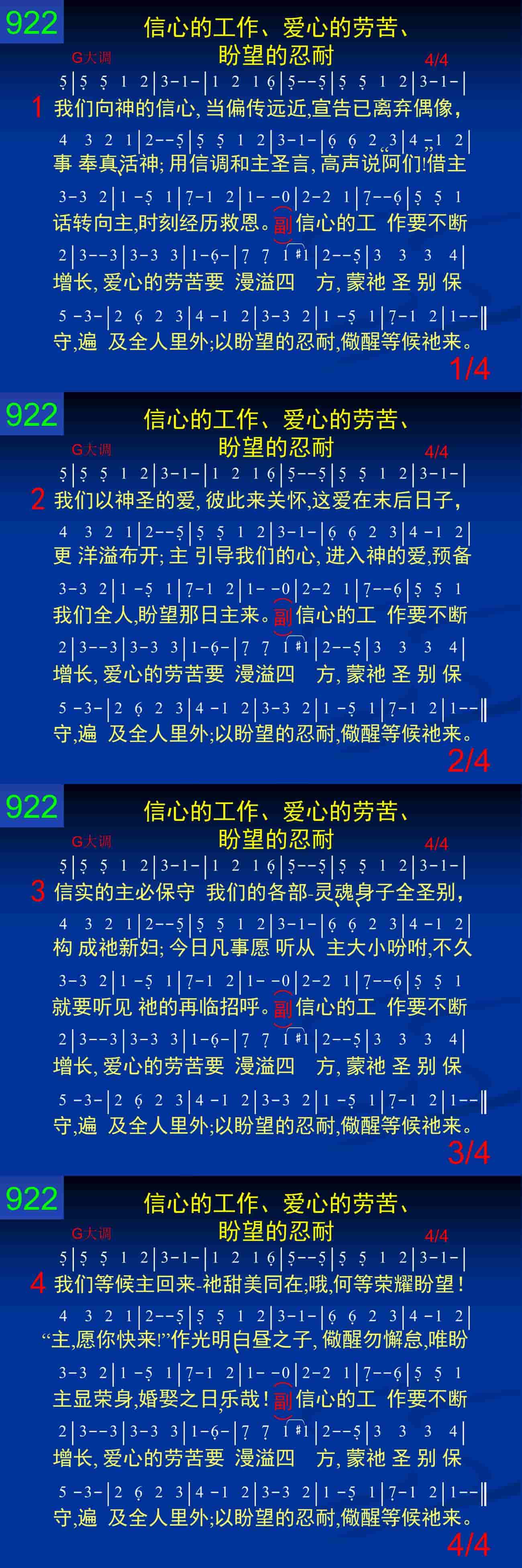 我们等候主回来——祂甜美同在;哦,何等荣耀盼望!“主,愿你快来!”作光明、白昼之子,儆醒勿懈怠,唯盼主显荣身,婚娶之日,乐哉!