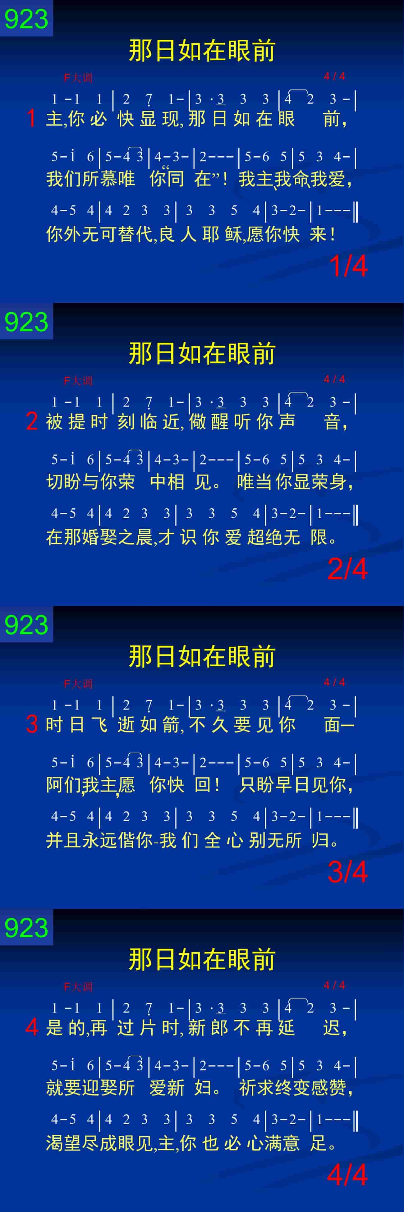时日飞逝如箭,不久要见你面——阿们,我主,愿你快回!只盼早日见你,并且永远偕你——我们全心别无所归。