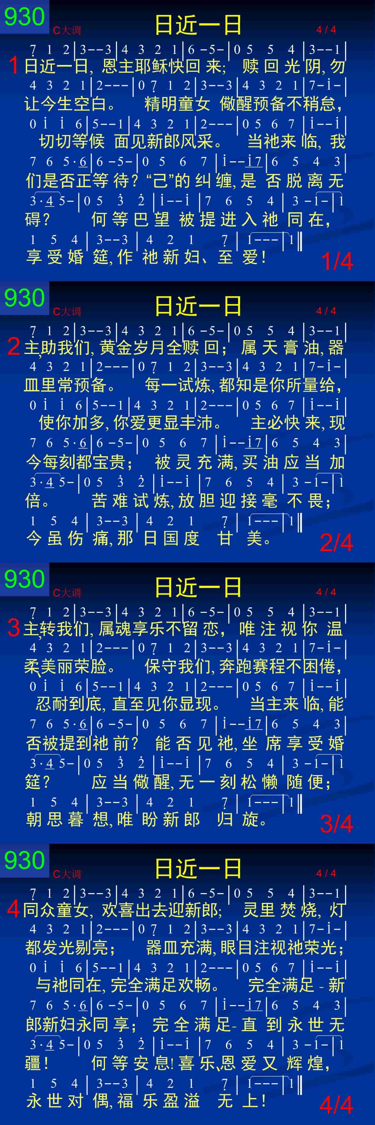 主,转我们,属魂享乐不留恋,唯注视你温柔、美丽荣脸。保守我们,奔跑赛程不困倦,忍耐到底,直至见你显现。当主来临,能否被提到祂前?能否见祂,坐席享受婚筵?应当儆醒,无一刻松懒随便;朝思暮想,唯盼新郎归旋。