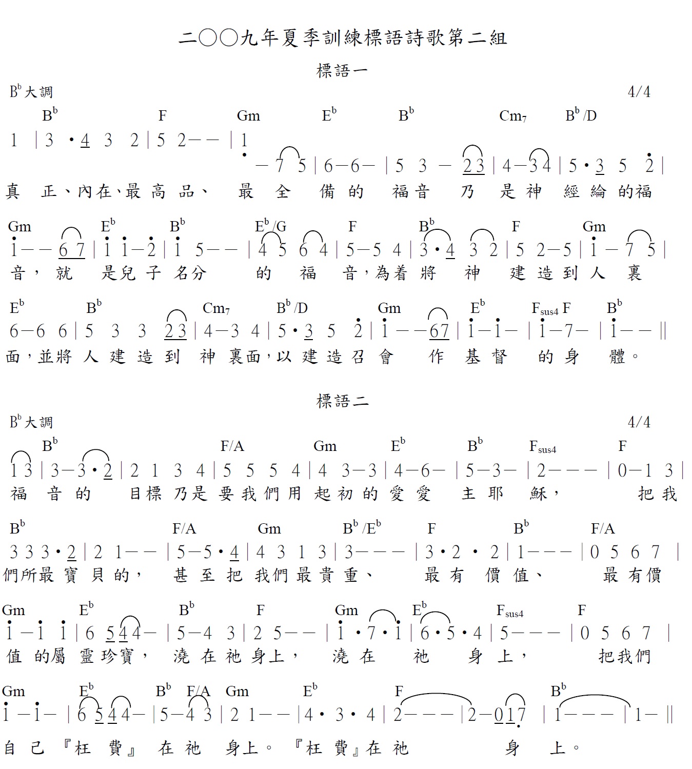 2009夏训-神的福音结晶读经-第二组