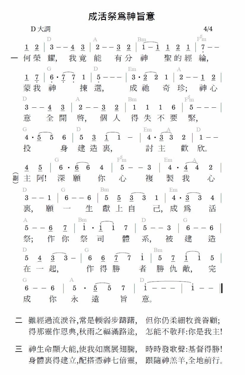 主啊!深愿你心复制我心里,愿一生献上自己,成为活祭;作你祭司体系,被建造在一起,作得胜者胜仇敌,完成你永远旨意。